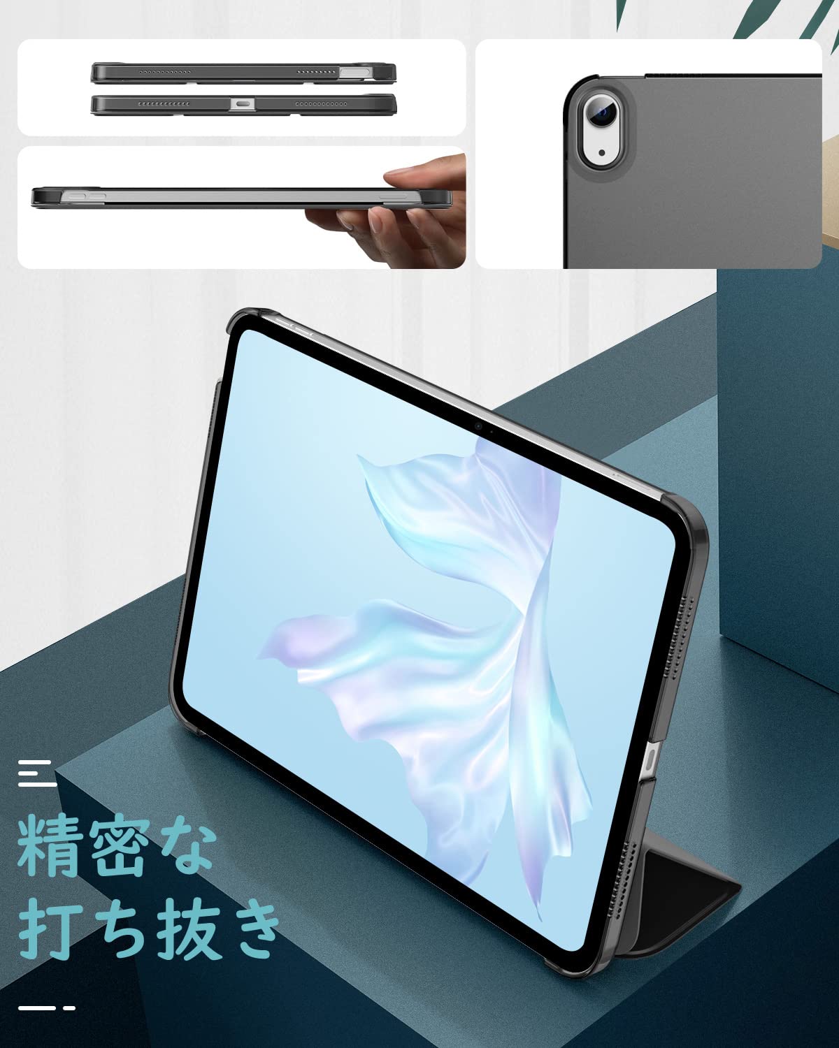 ■ 「三つ折り・スタンド機能」 カバーを折れる仕様にデザインして、折巻きしてスタンドになれて、二つの置く角度調整できて、両手解放で動画観賞や、タイピング、ゲームなども快適にご利用頂けます。