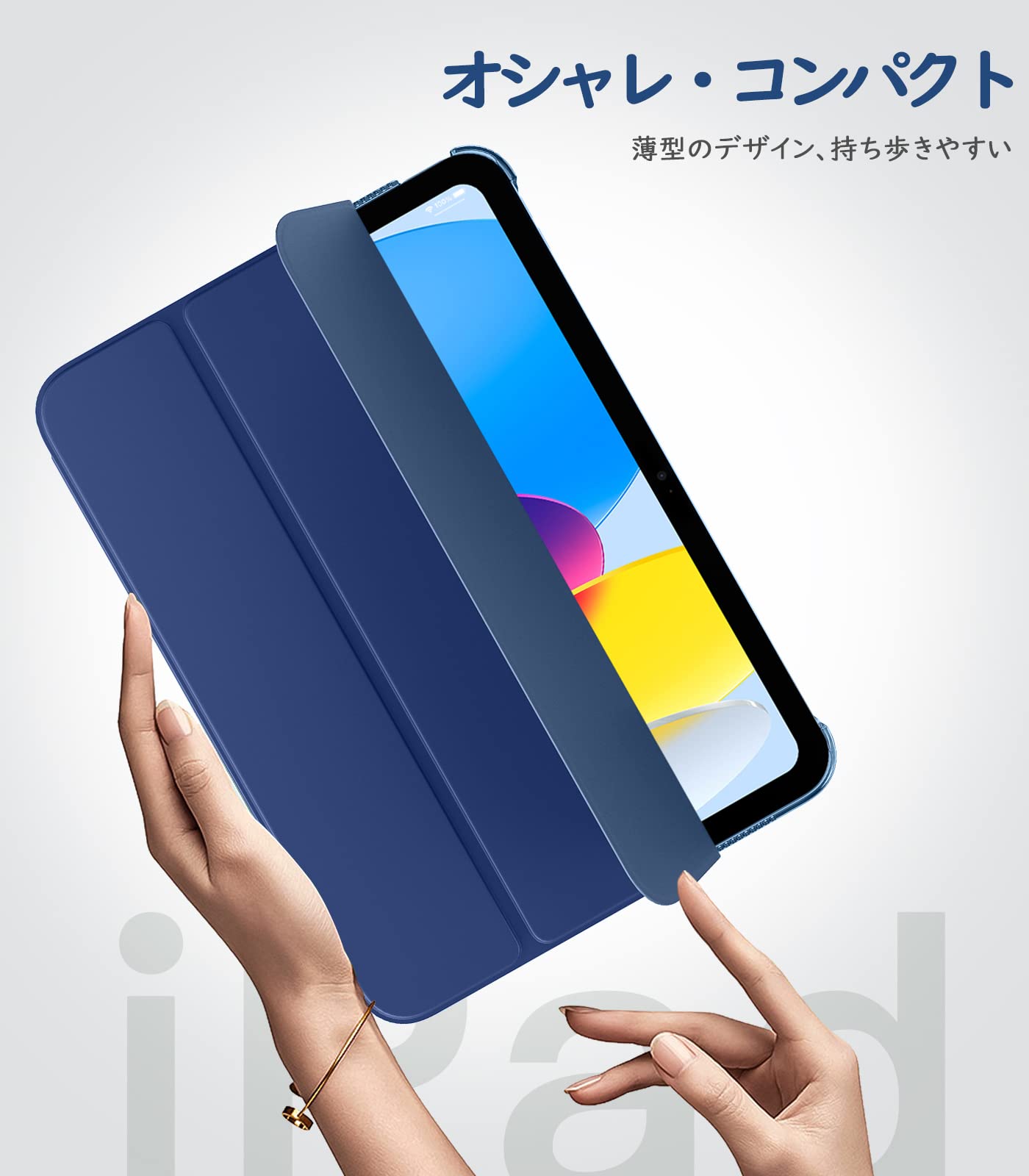 TiMOVO iPad (A16)11世代 ケース 11インチ 2025モデル/ iPad 第10世代 ケース 10.9インチ 2022モデル ハードカバー PUレーザー 開閉式 三つ折り スタンド マグネット オートスリープ機能 耐衝撃 軽量 落下防止 精密設計 着脱簡単 半透明 Navy Blue
