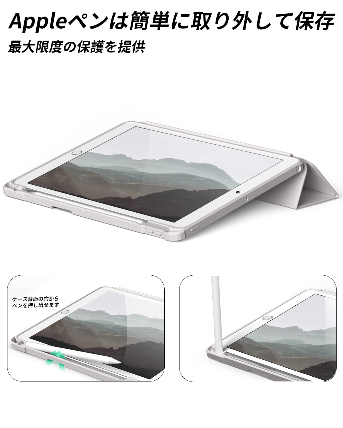 Aoub iPad 9世代 ケース 10.2 インチ iPad ケース 第9/8 /7世代 2021 2020 2019 透明バックカバー ペン収納 三つ折スタンド オートスリープ機能 軽量 薄型 傷つけ防止 PU合成レザー TPU (モデル番号A2602、A2603、A2604、A2605) グレー