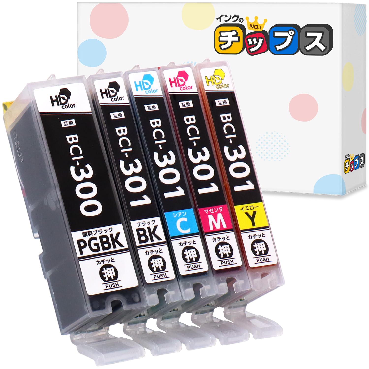 インクのチップス キヤノン用 BCI-301/300-5MP 5色セット 互換インク 顔料/染料 <発色の良いHDカラー使用> <残量検知対応ICチップ搭載> 対応機種:PIXUS TS7530