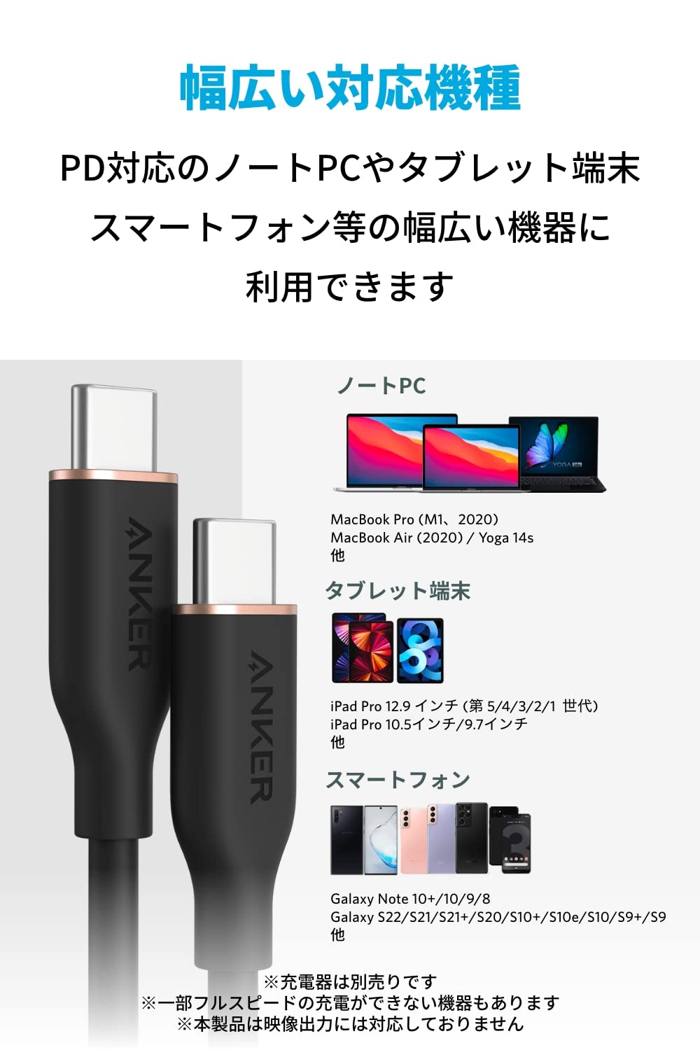 ■ フルスピード充電:最大出力240Wの高出力で、スマートフォン、タブレット端末、ノートPC等のUSB-C端子機器にフルスピード充電が可能です。
