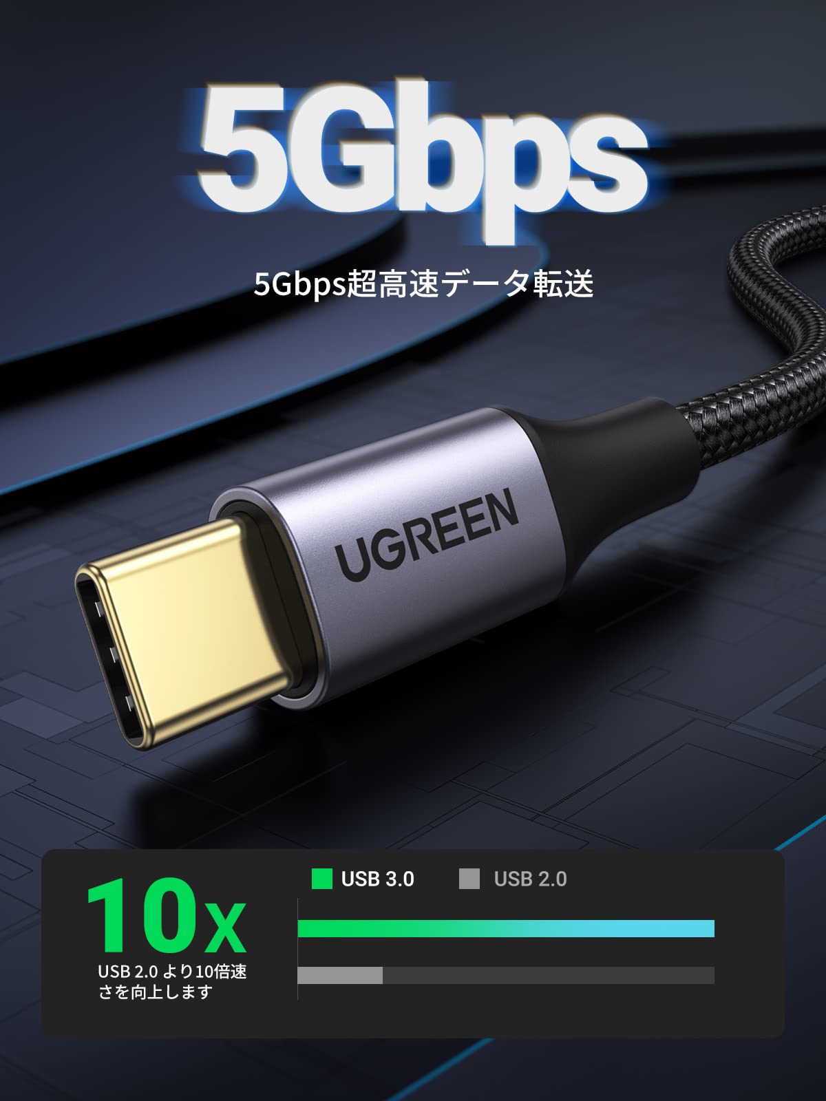 UGREEN USB 3.0 typec ケーブル Quick Charge 3.0 usb c ケーブル 急速充電 5Gbps データ転送 ナイロン編み 高耐久性iphone17シリーズ Galaxy S21 S20 Flip Note 9T Note 8 Xperia 10 II PS5 などに対応 2M