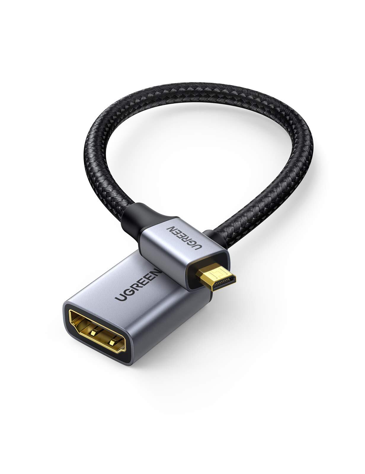 UGREEN Micro HDMI延長ケーブル Micro HDMI to HDMI変換アダプター micro-hdmi hdmi 変換 3D 4K 60Hz カメラ Gopro Yoga 対応 ナイロン編み グレー 25cm
