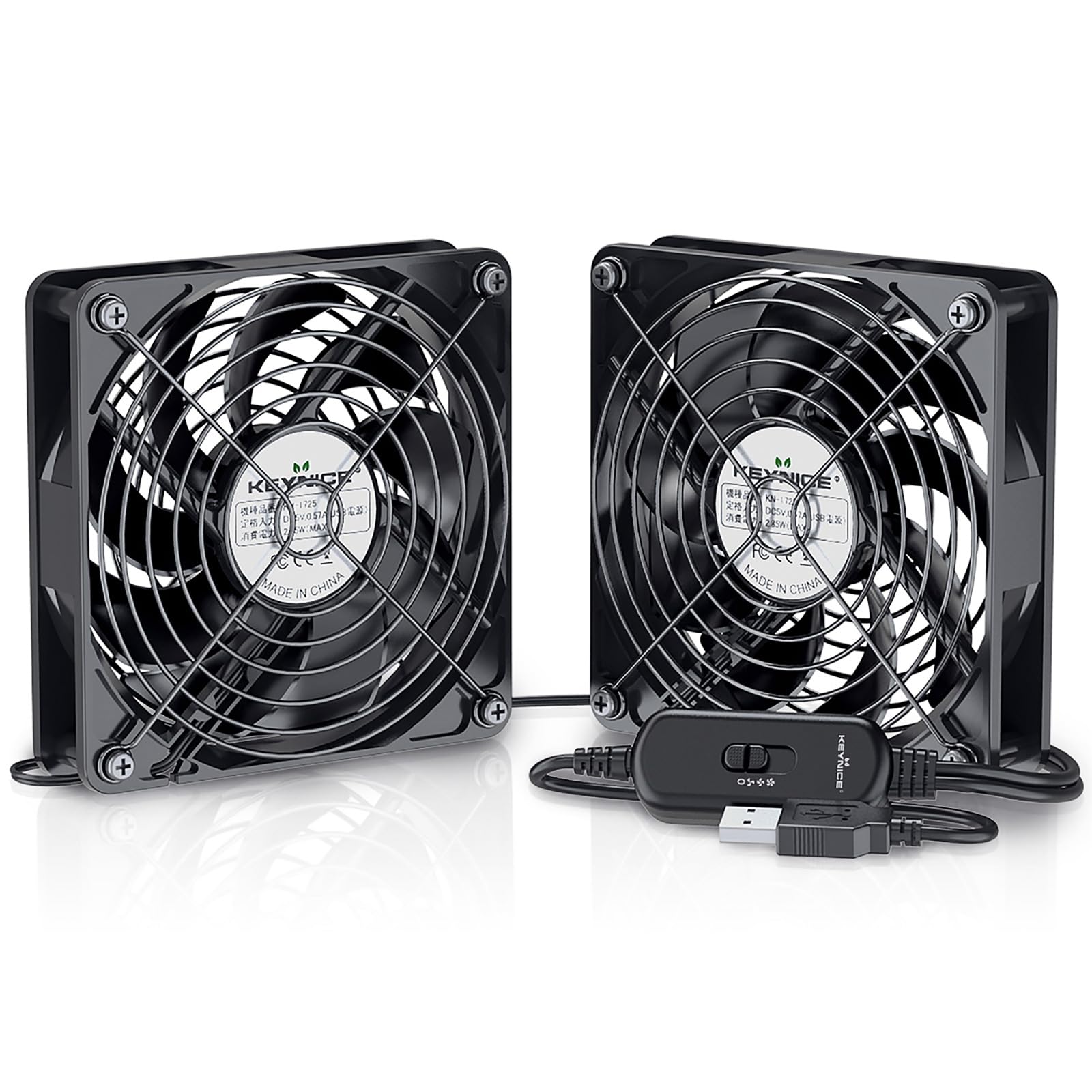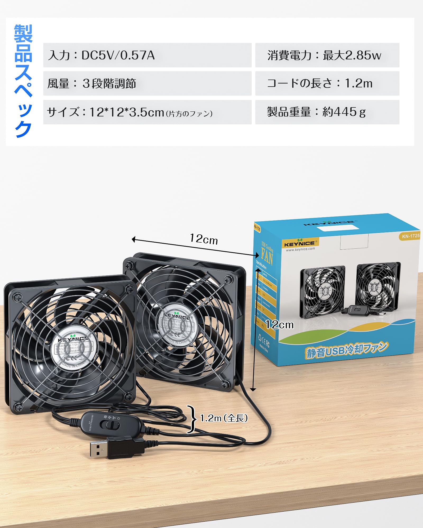 KEYNICE USBファン 静音 冷却ファン 強力 冷却 パソコン 送風機 扇風機 ミニファン 小型 クーラー 2000RPM 9枚羽根 ルーター 水槽 PS4冷却 薄型 12cm 2個1組