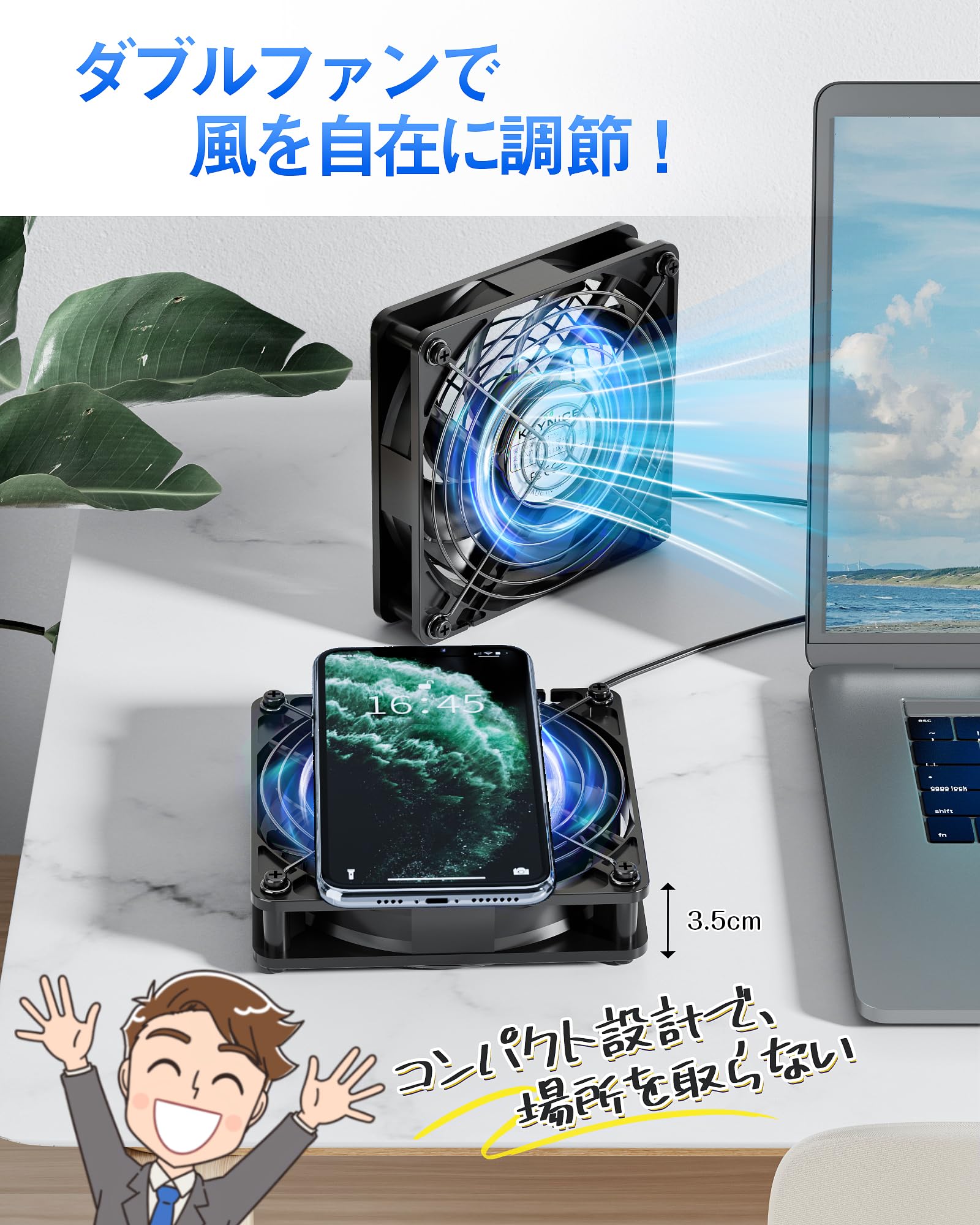 2台のミニファンを自由な角度で設置が可能なため、冷却効果抜群です!