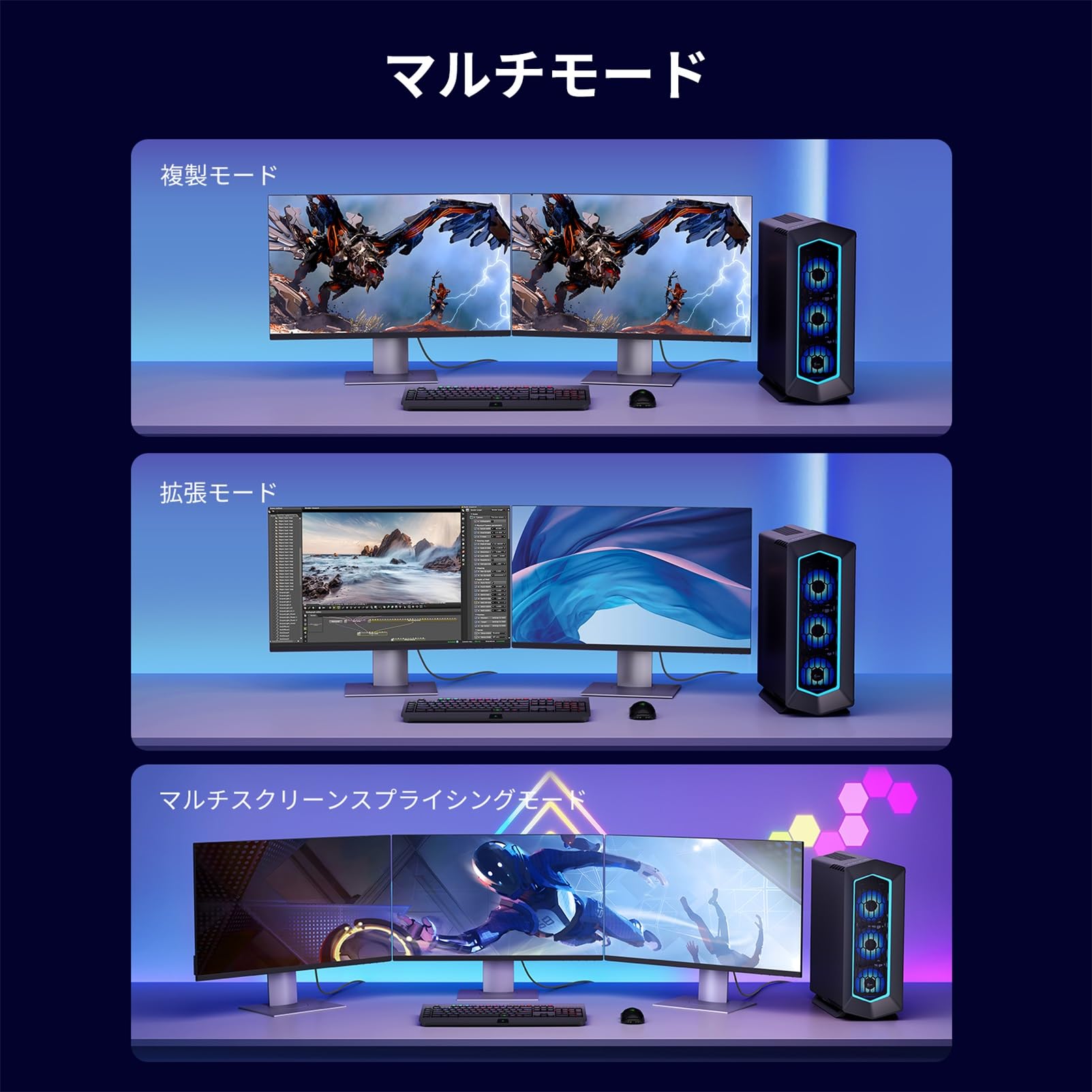 ■ 【幅広い互換性】複製モードと拡張モードも対応しますので、ご使用環境によって自由に転換できます。
