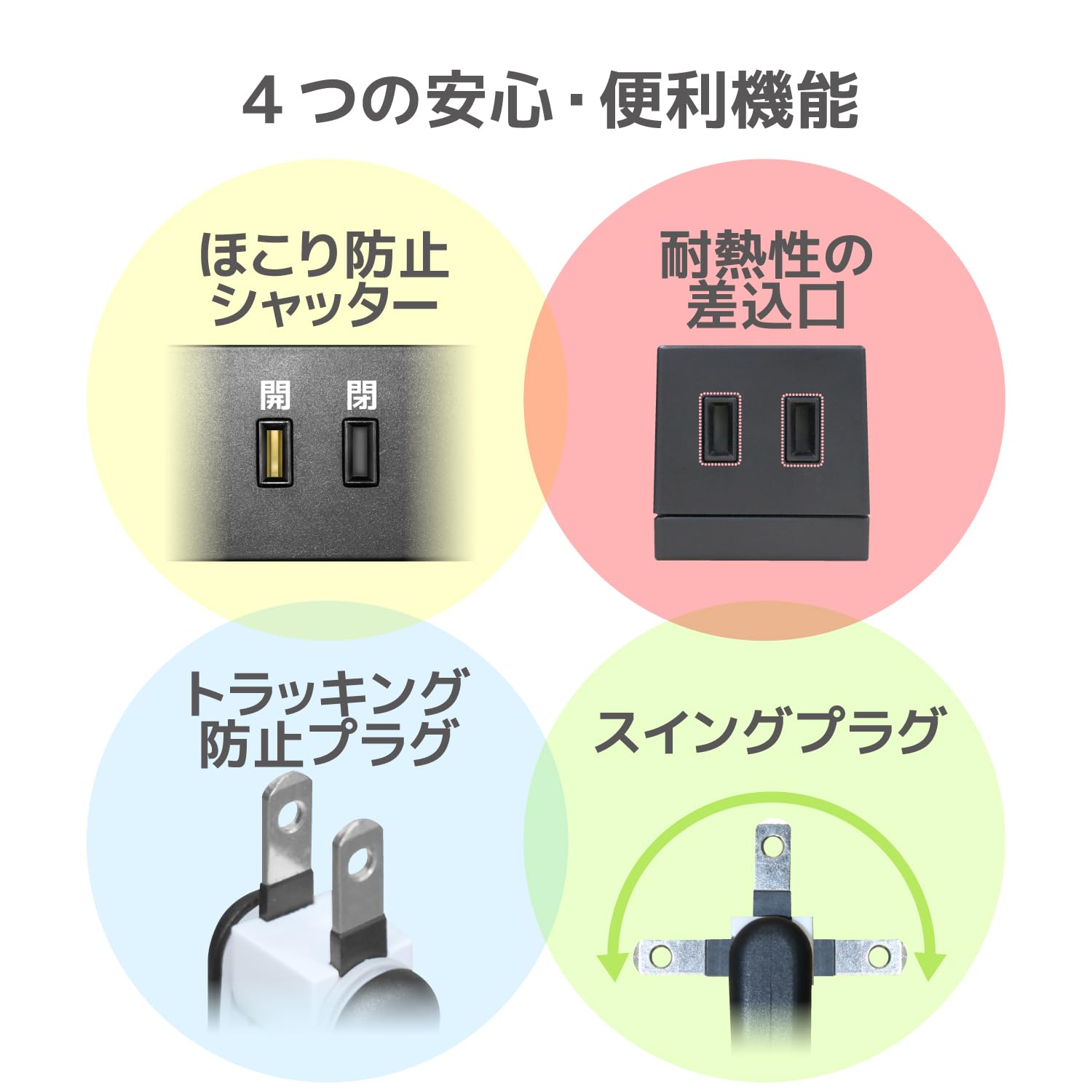エレコム 電源タップ 雷ガード 10個口 2m ほこりシャッター 【 固定 ・吊下可能な回転パーツ付き】 ブラック ECT-0102BK