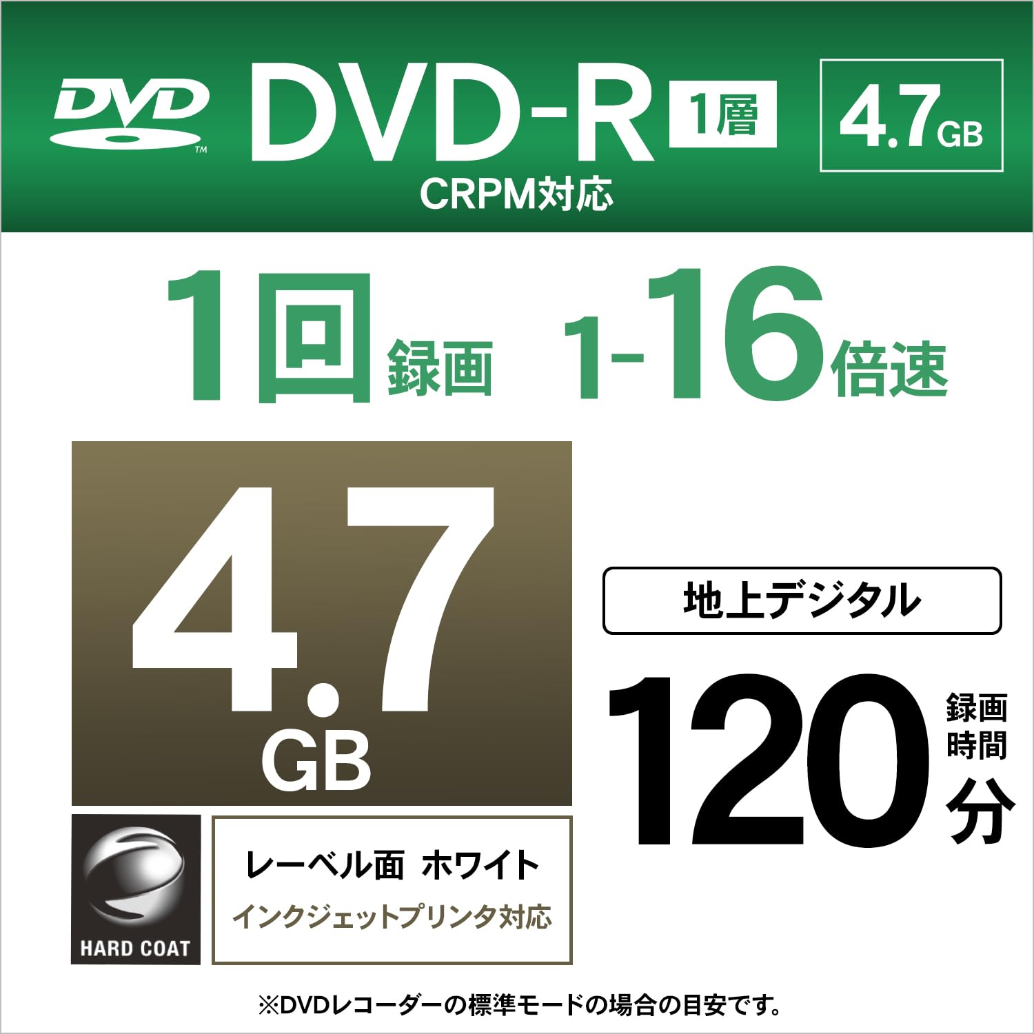 ■ 容量 : 4.7GB 録画時間:120分