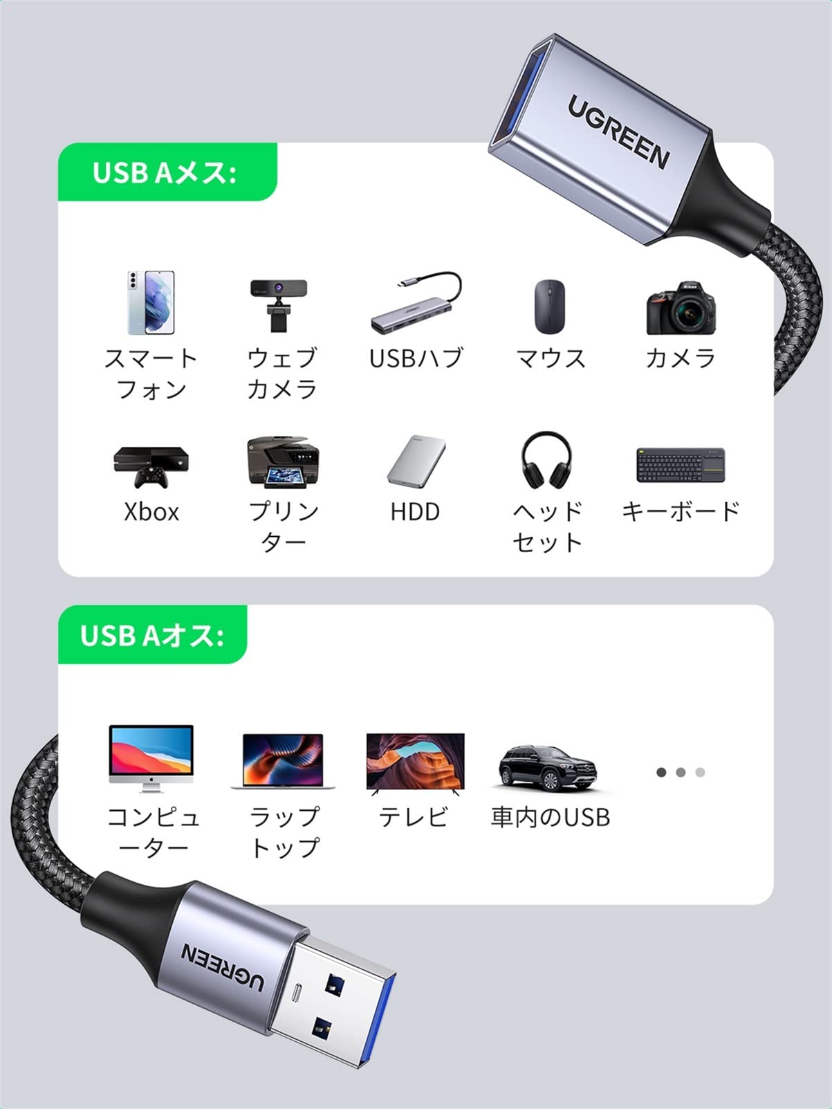 ■ 短いUSBケーブルに最適:UGREEN USB延長ケーブルがUSBポートの使用範囲を拡張します。