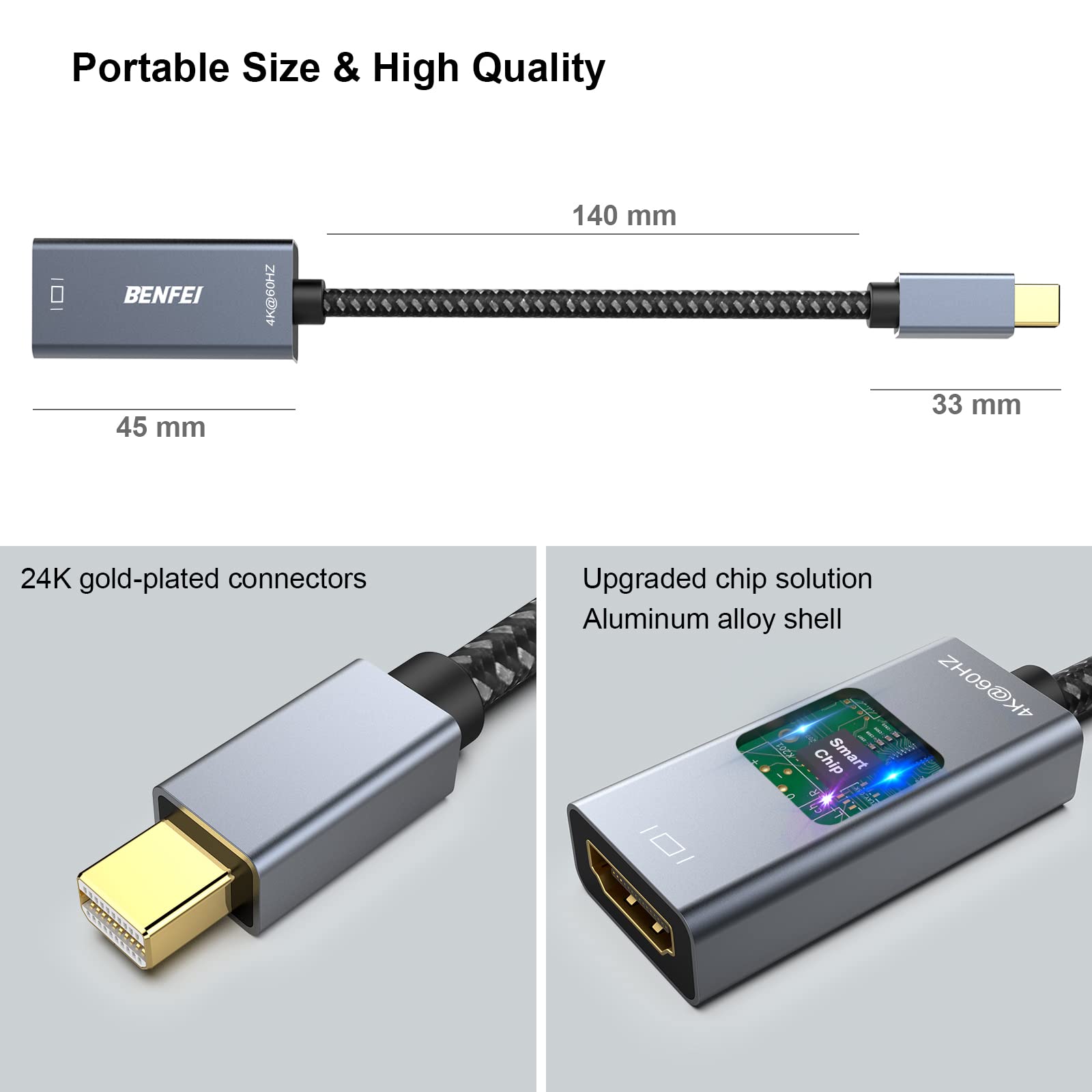 BENFEI Mini DisplayPort - HDMI、4K@60Hz アクティブ Mini DP - HDMI アダプター (Thunderbolt 2互換) MacBook Air/Pro、Surface Pro/ドック、モニター、プロジェクター対応