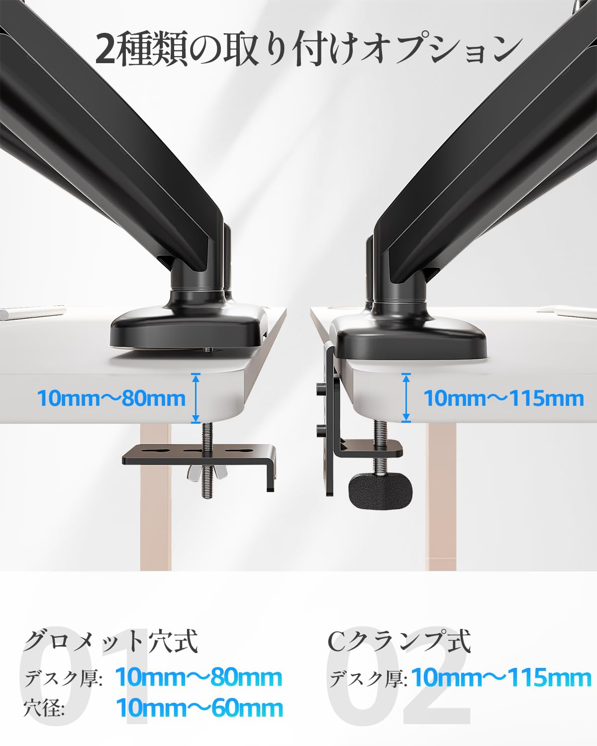 MOUNTUP モニターアーム デュアル 液晶ディスプレイアーム 2画面 13~32インチ対応 耐荷重2~8kg クランプ グロメット式 VESA対応 75x75mm 100×100mm ケーブル収納