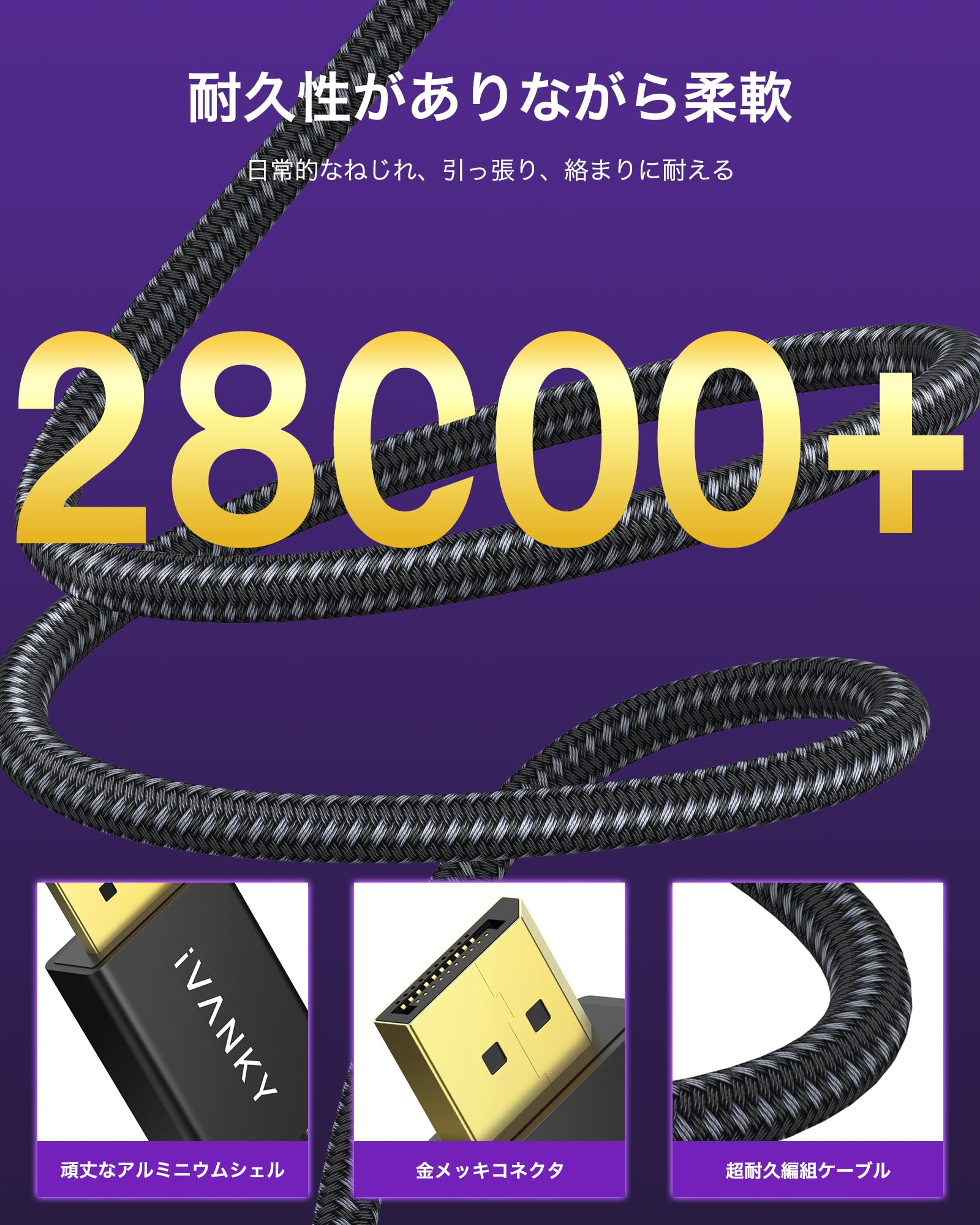 ■ 【8K対応 超高解像度dpケーブル】iVANKY DisplayPort 1.4規格のディスプレイポート ケーブルが8K@60Hz/4K@144Hz/1080P@240Hzを実現。