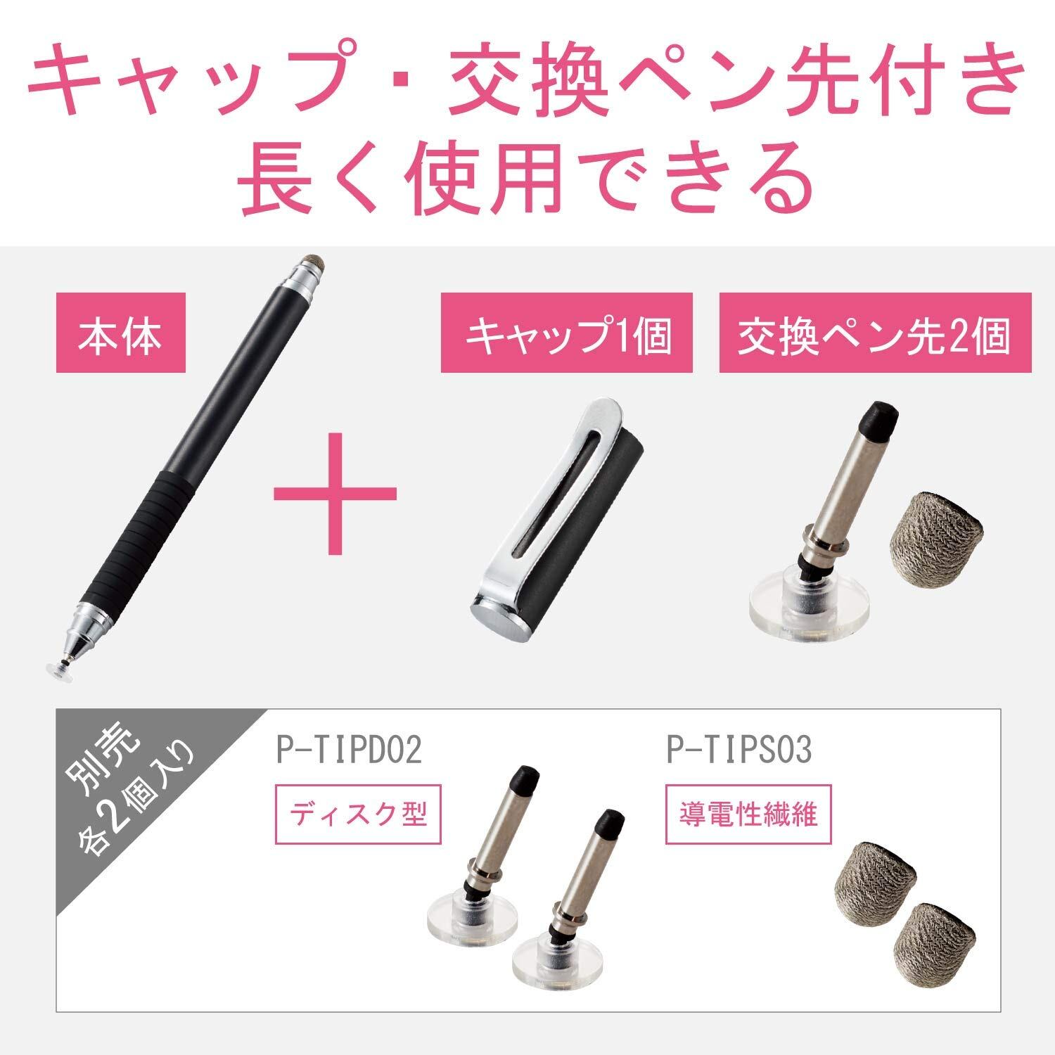 エレコム タッチペン スタイラスペン 【iPad/iPhone/Android スマホ・タブレット各種対応】 2WAYモデル 導電繊維 & ディスク 交換ペン先付 ブラック PWTP2WY01BK