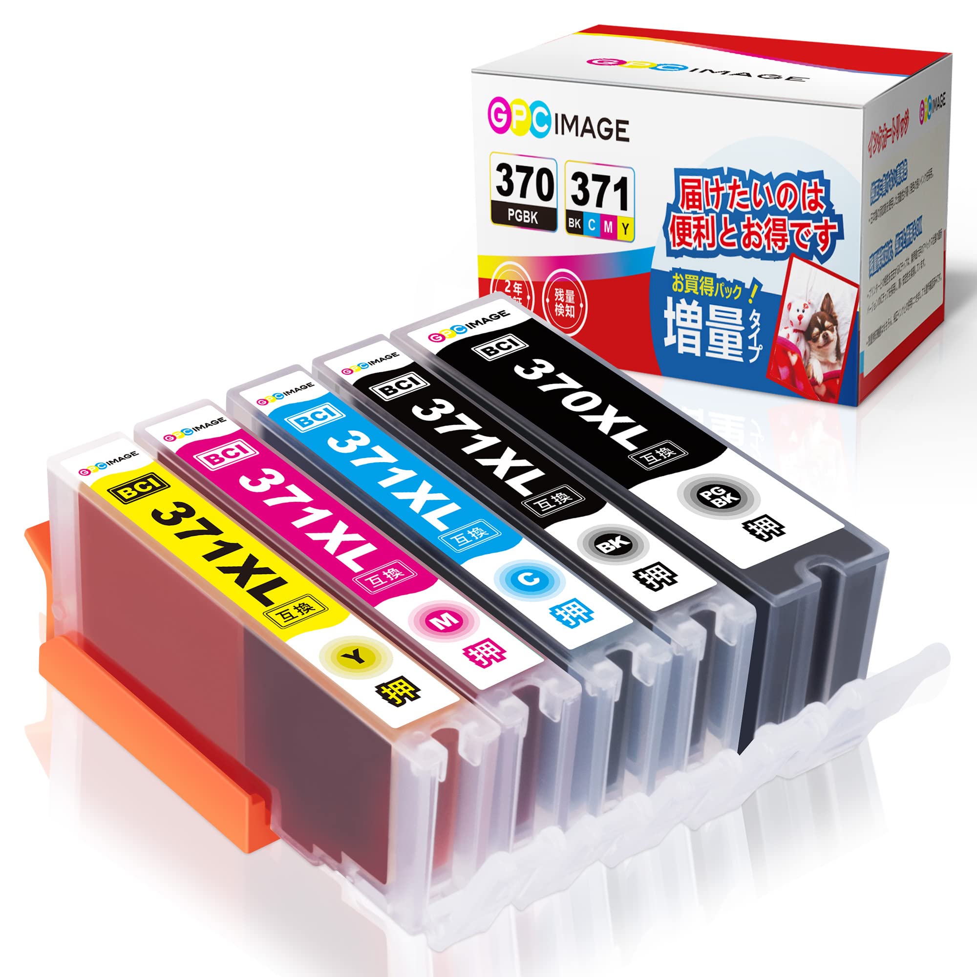 GPC Image BCI-371XL 370XL 互換インクカートリッジ 5色セット 大容量タイプ Canon 対応 インク 371 370 キャノン 用 BCI-371 370 インクカートリッジ TS5030 5030S 6030 8030 9030 5730 6930 7730 対応の 371 370 インク 残量表示機能 個包装 説明書付