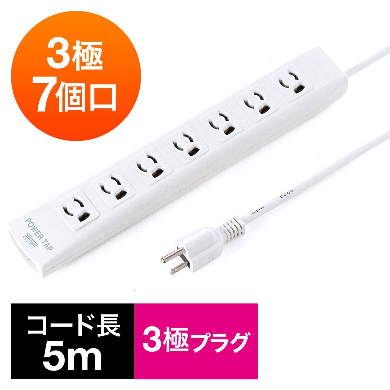 サンワダイレクト 電源タップ 7個口 5m 3P 3極プラグ 雷ガード マグネット <PSE取得> 700-TAP040