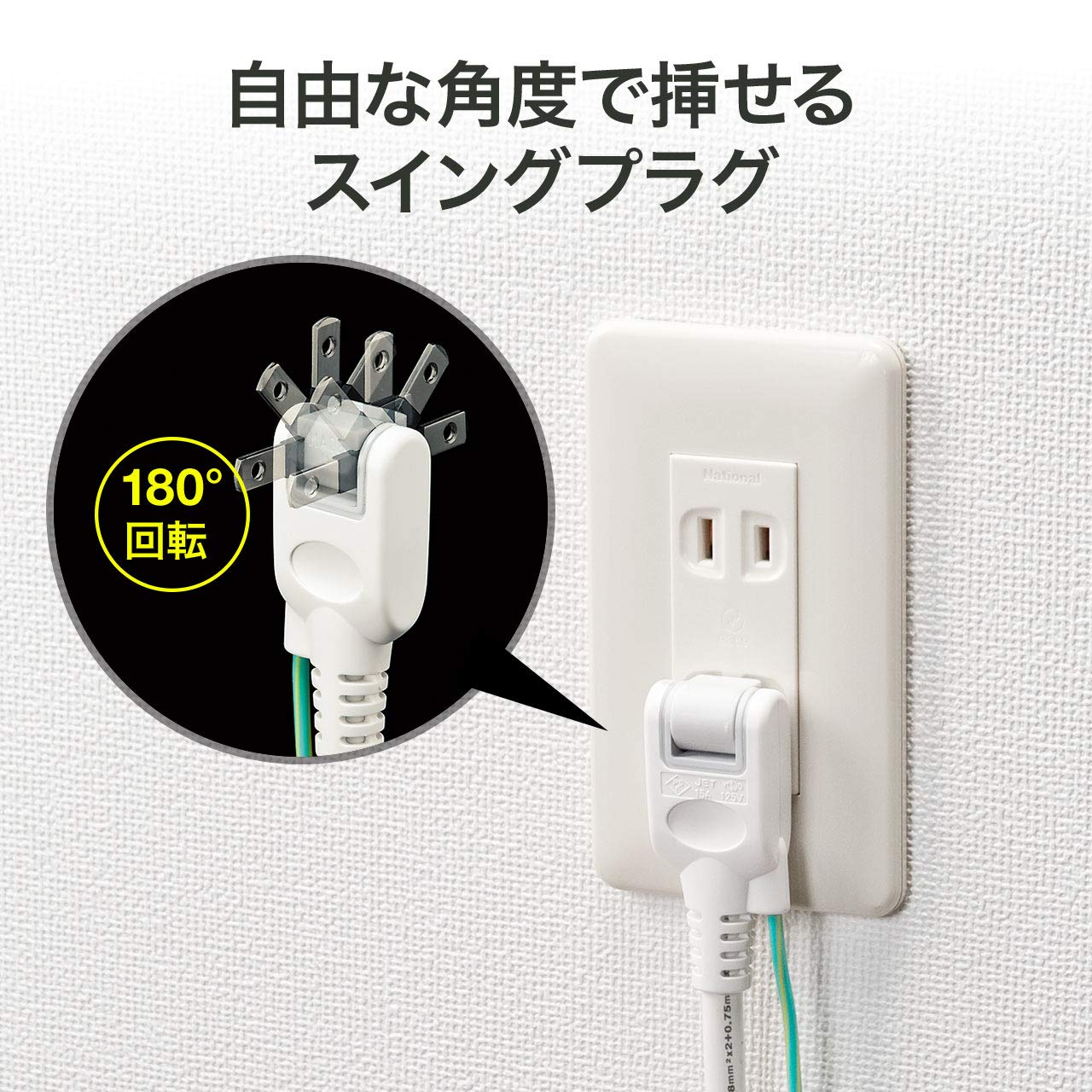 コンセント差し込み口は2極プラグで、使用場所に応じて角度が180°変えられるスイングプラグ仕様です。