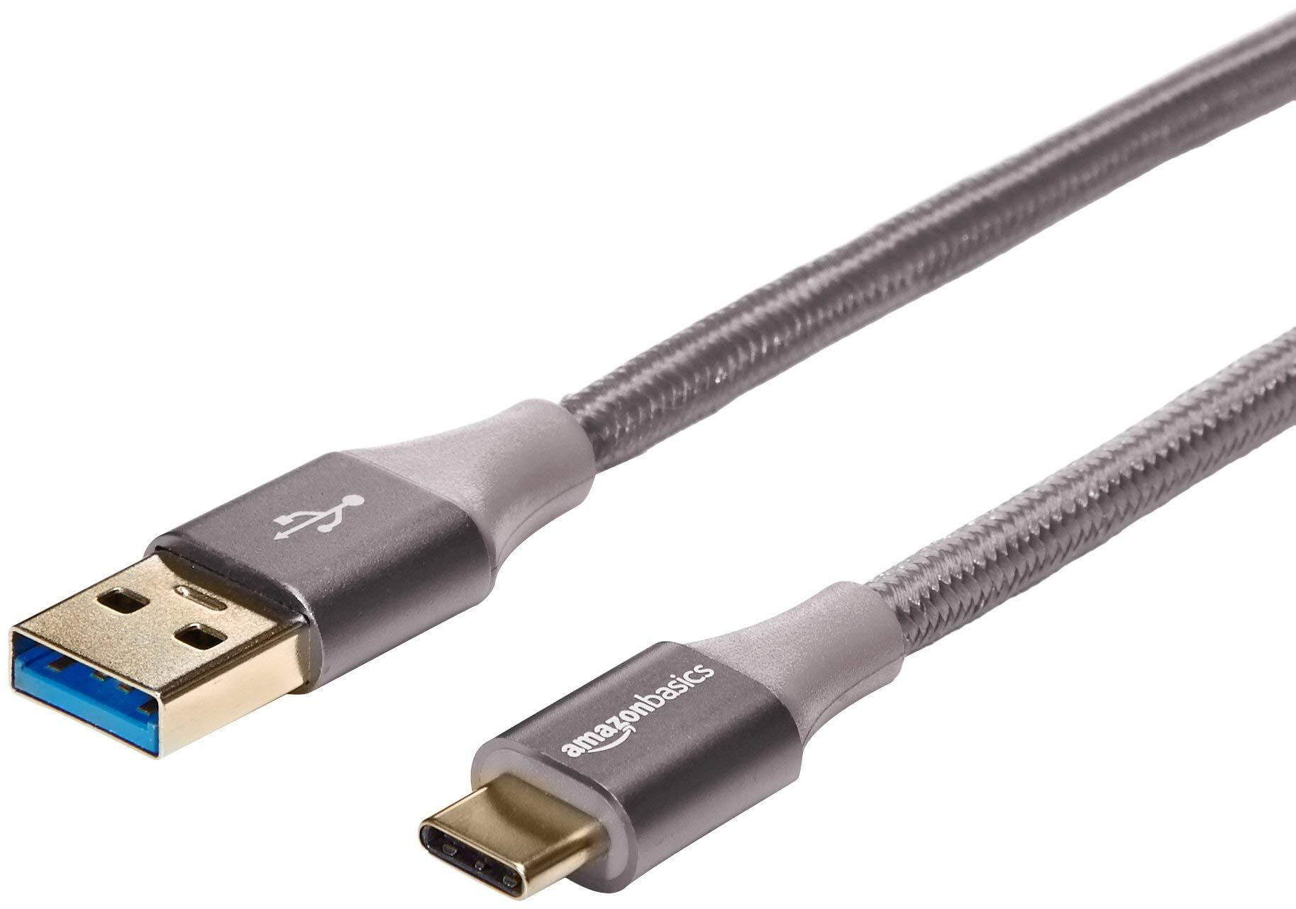ベーシック USB-C - USB-A 3.1 Gen 1 高速充電ケーブル ナイロン編みコード Apple iPhone 16/15 iPad Samsung Galaxy タブレット ラップトップ用 3.05m ダークグレー