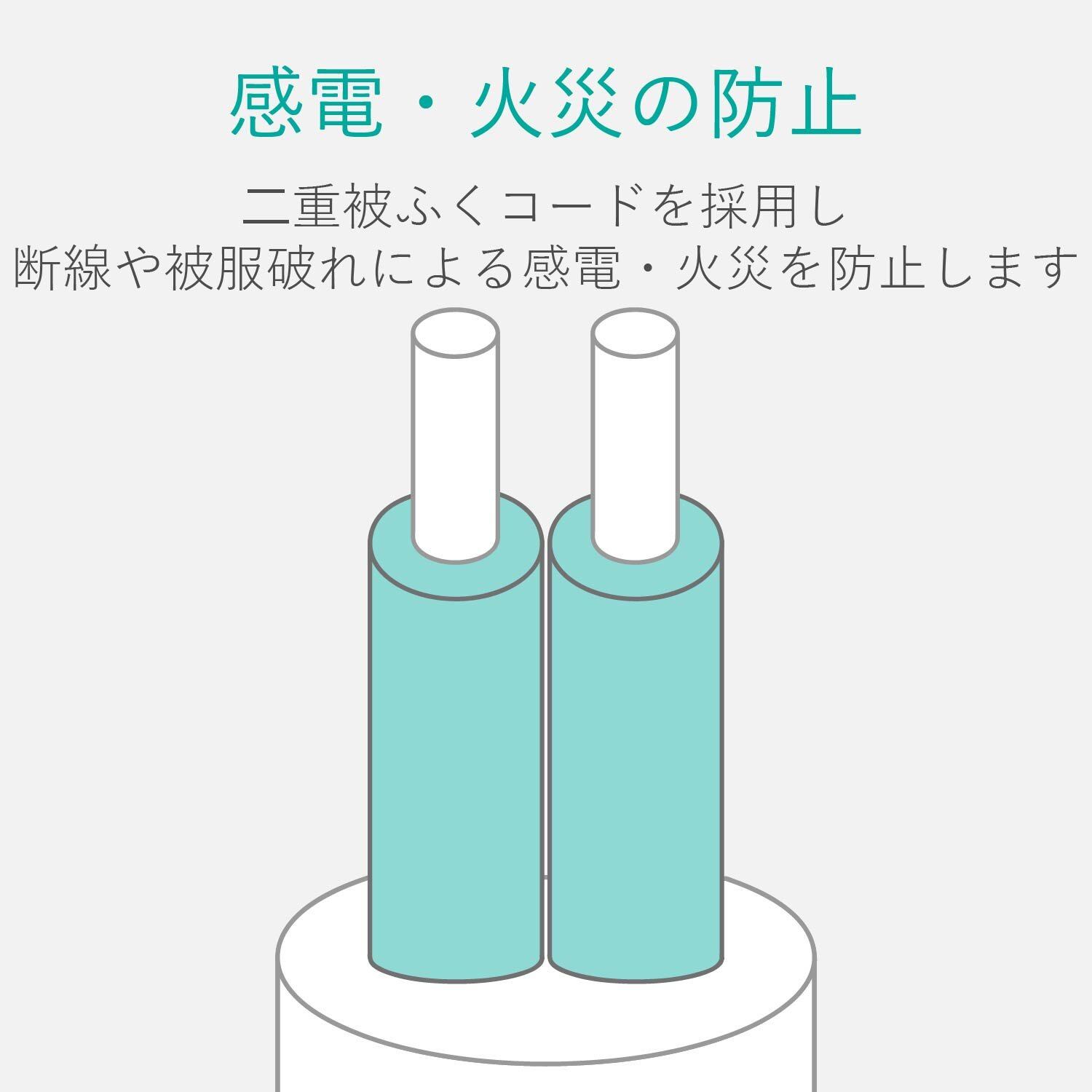 ■ 電源コードには一般社団法人日本配線システム工業会規格(JWDS0010)に適合した二重被ふくコードを採用しており、断線や被ふく破れによる感電・火災の防止に有効です。
