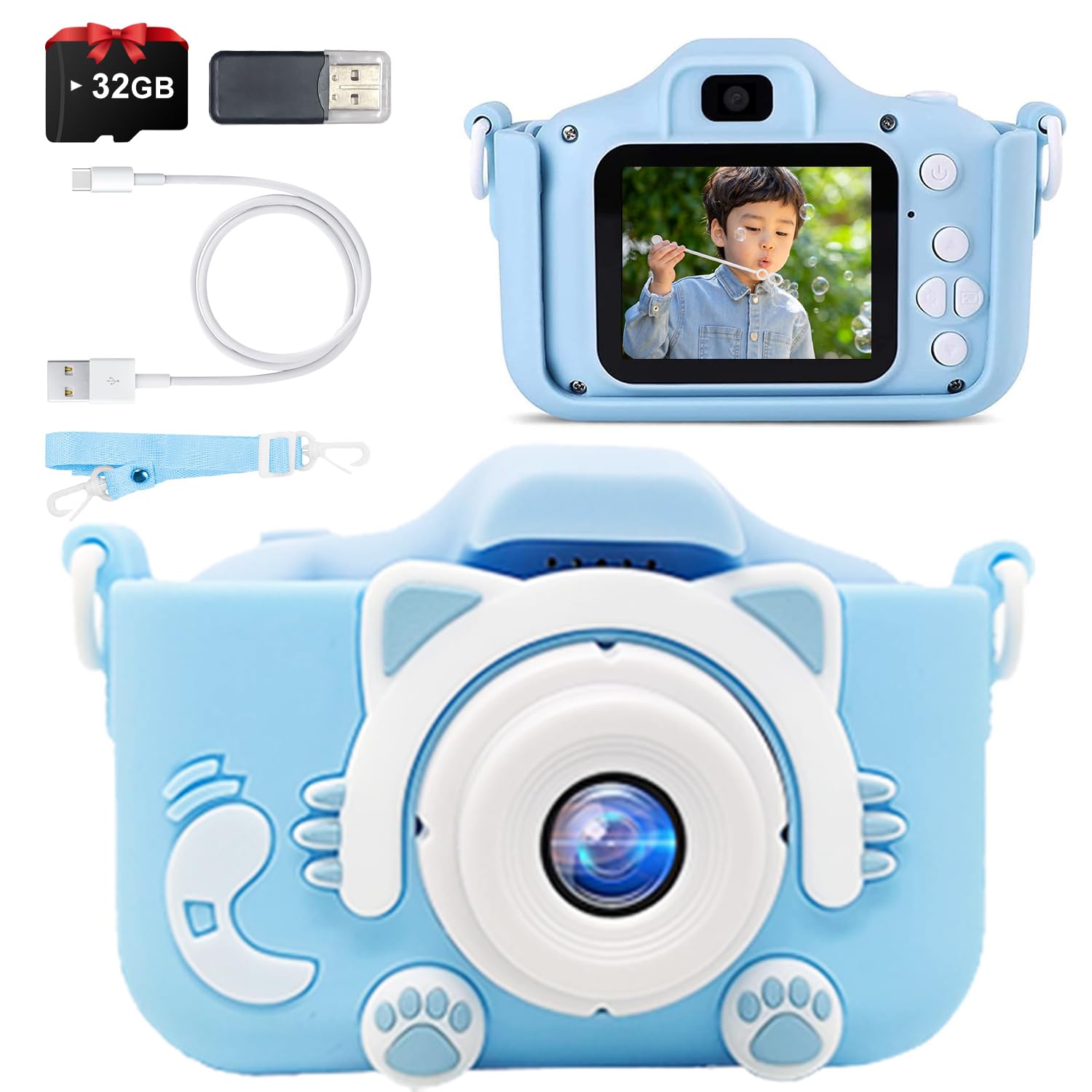 キッズカメラ 子供用 【自撮り簡単・2025新登場】 子供 カメラ トイカメラ 1080P HD 動画カメラ 32GB メモリーカード付き データ転送 保護ケース デュアルレンズ 操作簡単 USB充電 IPS 画面 8倍ズーム タイマー撮影 ゲーム機能 子供向け録音自撮り 女の子 男の子 4歳 5歳 6歳 7歳 8歳 キッズ 日本語説明書付き