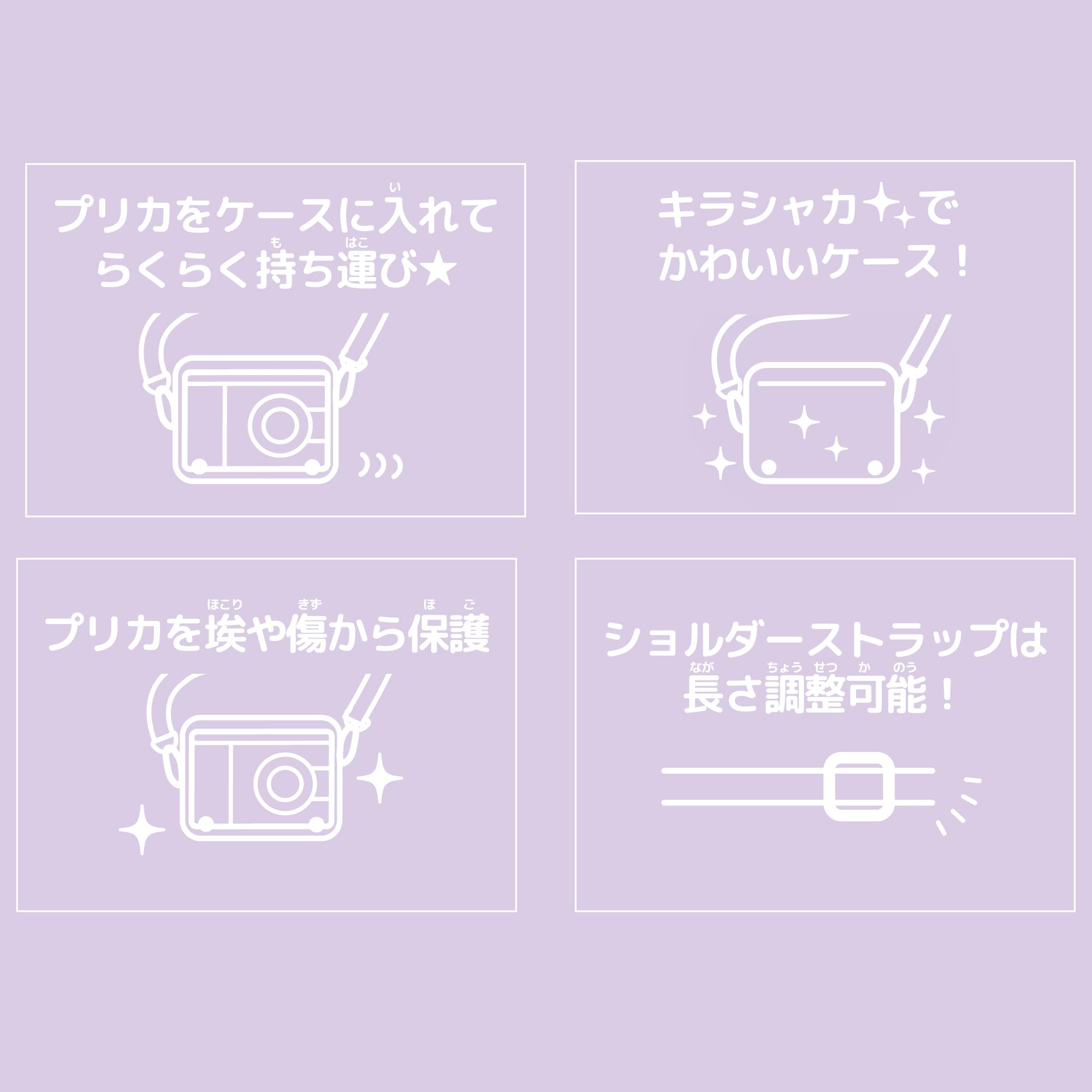 * ・PRINT CAMERA プリカと一緒に楽しくおでかけ!可愛いキラシャカパーツ入りサンリオキャラクターズのクリアケースとプリカのセット。 ・サンリオキャラクターズの可愛いキャラクターフレームがいっぱい!思い出は「その場で」「すぐに」プリントしよう。 ・お絵かき・ぬりえ・メッセージを書いてお友達にプレゼントできちゃうコミュニケーションツールです。