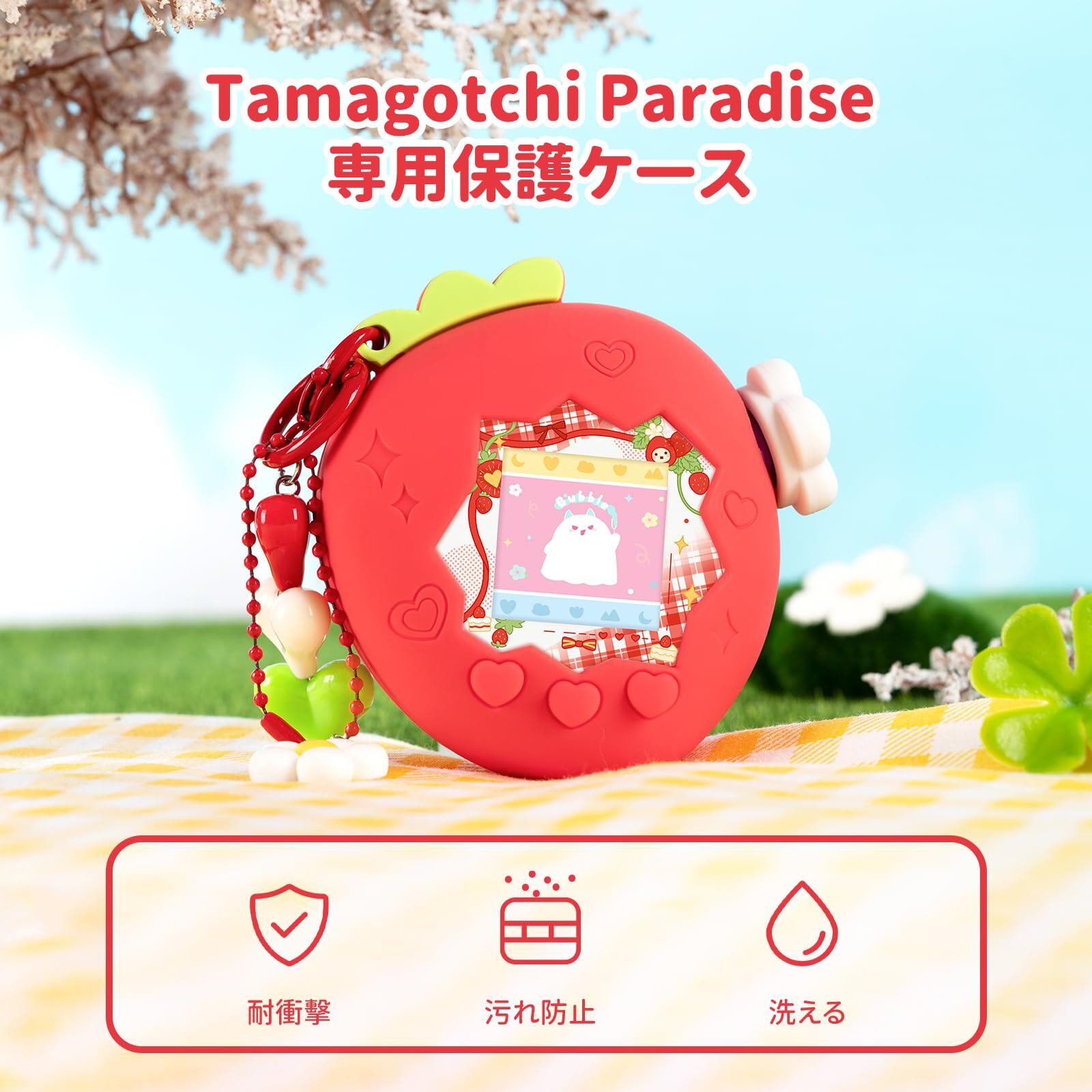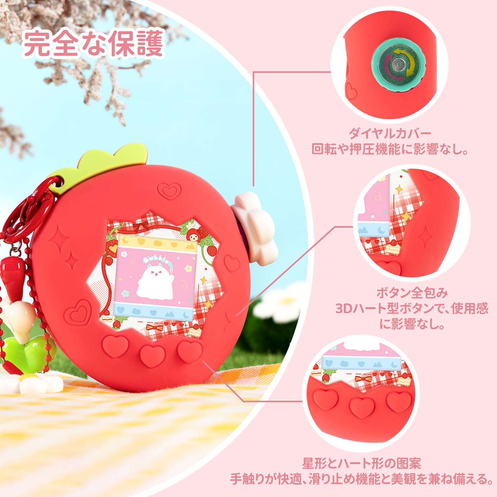 BUBBLELOGUS たまごっちパラダイス ケース(Tamagotchi Paradise 用) シリコーン保護カバー ズームダイヤルカバ一&チャーム&フェイスプレート付き かわいいスキン 柔らかい 子供向き 落下防止 キズ防止 完全な保護 防塵 いちごランド (赤い)