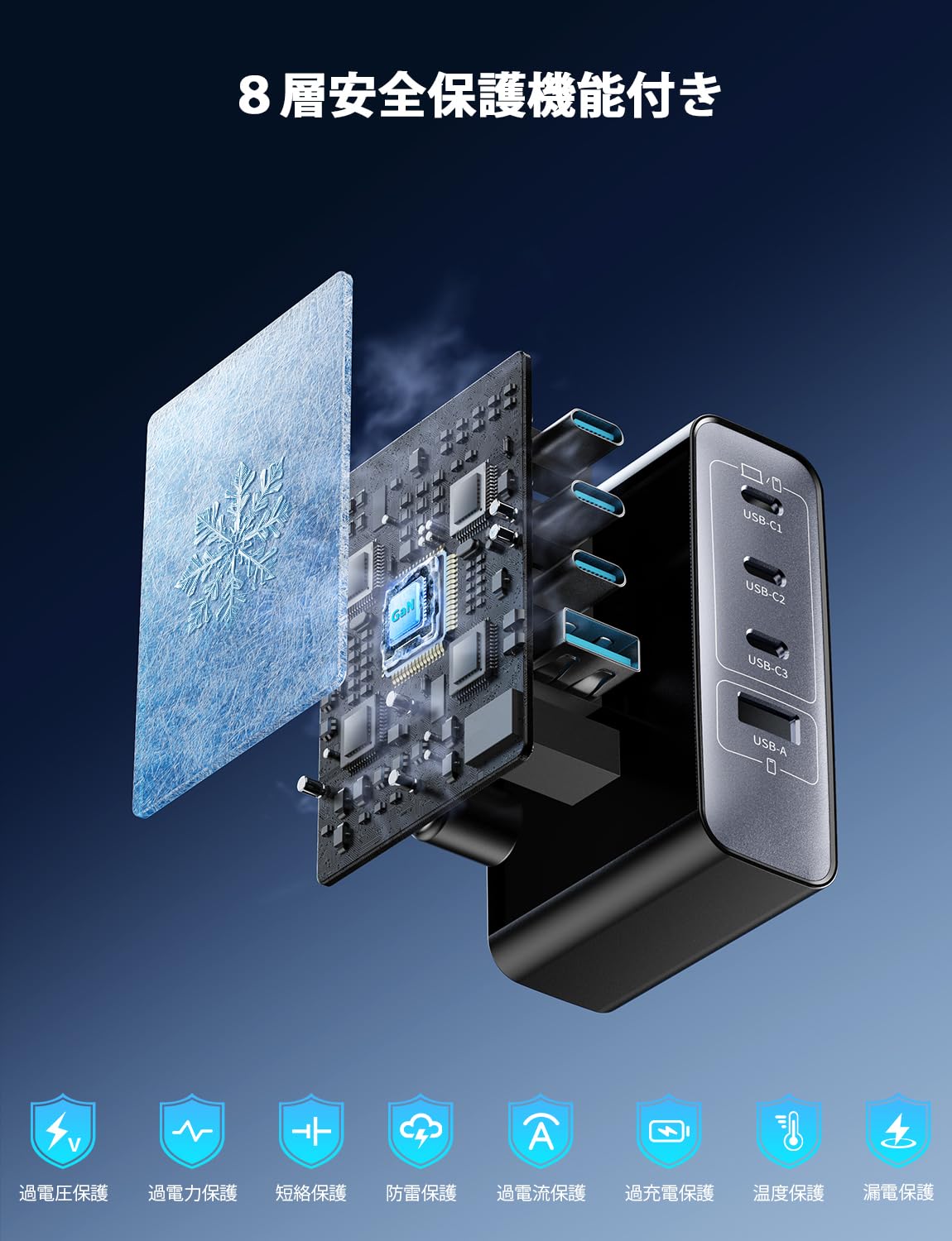 ■ 【安全なスマートチップ内蔵】:過電流・過熱・短絡を防止するスマートチップを内蔵、PD/QC/PPS規格対応、複数のポートを同時に使用すると、接続された機器の必要電力に応じて100Wの出力を最適に分配し、効率よくスムーズに充電を行います。