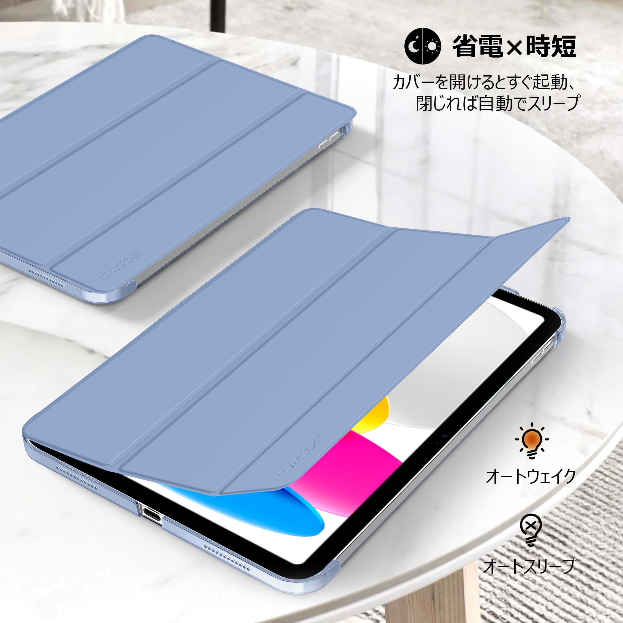 [iPad 11世代 10世代 ケース ガラスフィルム セット]CACOE ipad a16 11インチ 2025/10.9インチ 2022 アイパッド用 ハードケース オートスリープ 三つ折り Apple Pencil対応 あいばっど カバー ミスティーブルー