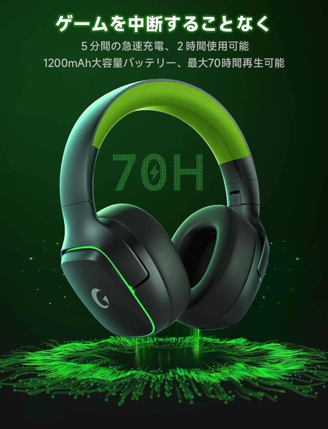 ■ 【急速充電&長いバッテリー寿命】:マイク付きヘッドホンの1200mAh のバッテリーは最大 70 時間のプレイ時間を提供し、急速充電機能によりわずか 5 分の充電で 2 時間の使用が可能になり、ノンストップのゲームに最適です。