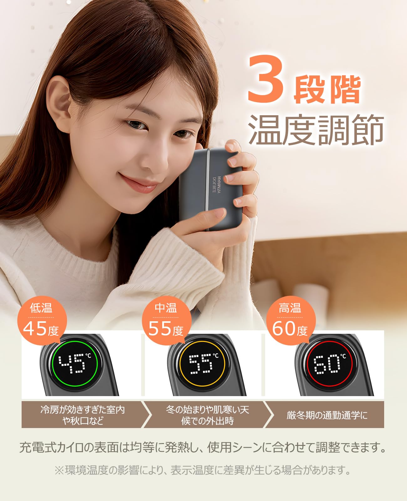 ■ 【繰り返し使える&3段階温度調節可能】充電式で、使い捨てカイロと異なり繰り返し使える充電式エコカイロで、環境的にも経済的にも優しいです。