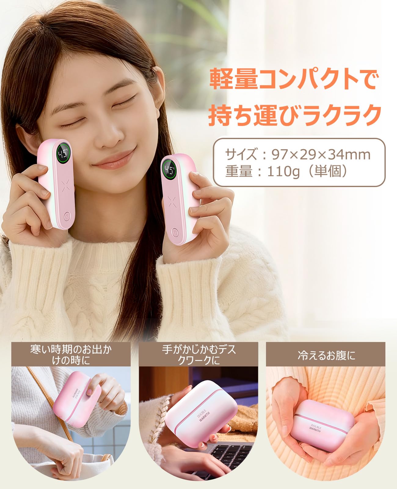 寒い冬のちょっとしたお出かけやアウトドアシーンでも、手のひらに温もりをお届けします。