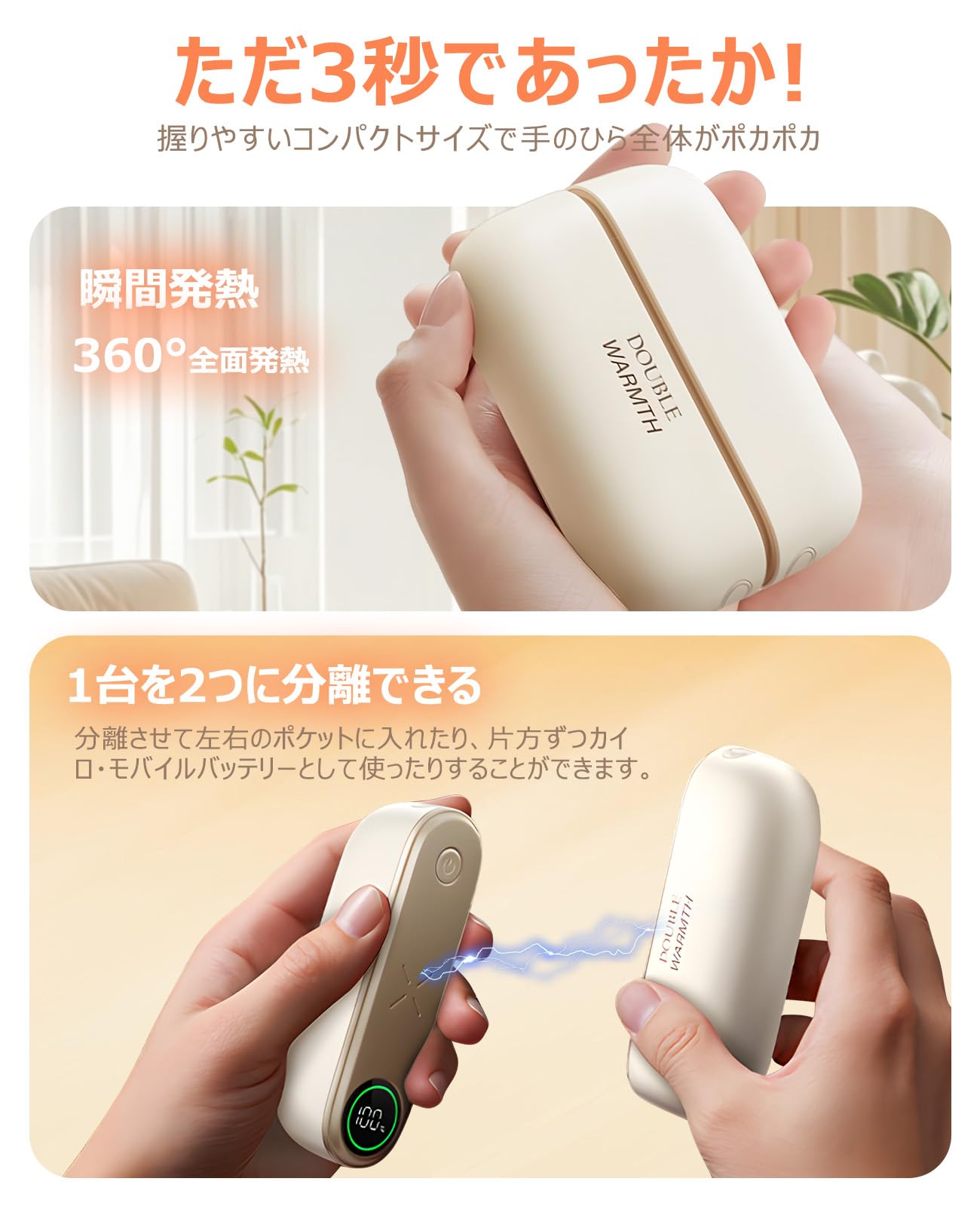 【2025冬限定モデル&2つ分かれる分離式】Kemolpo 充電式カイロ 3秒急速発熱 3段階温度調節 電気カイロ 10000mAh大容量 モバイルバッテリー機能 小型 軽量 持ち運びやすい 5V/2A急速充電 省エネ 旅行 出張 誕生日 祝い プレゼント (ベージュ)