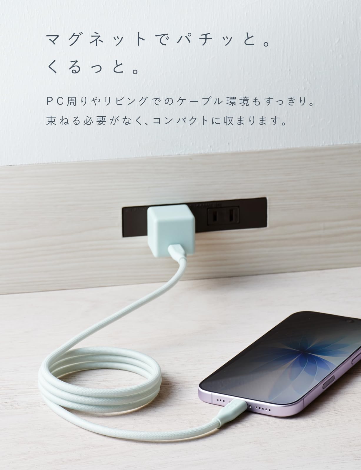 マグネットの力でケーブル長を調整できるのでたわみを最小限にできます。