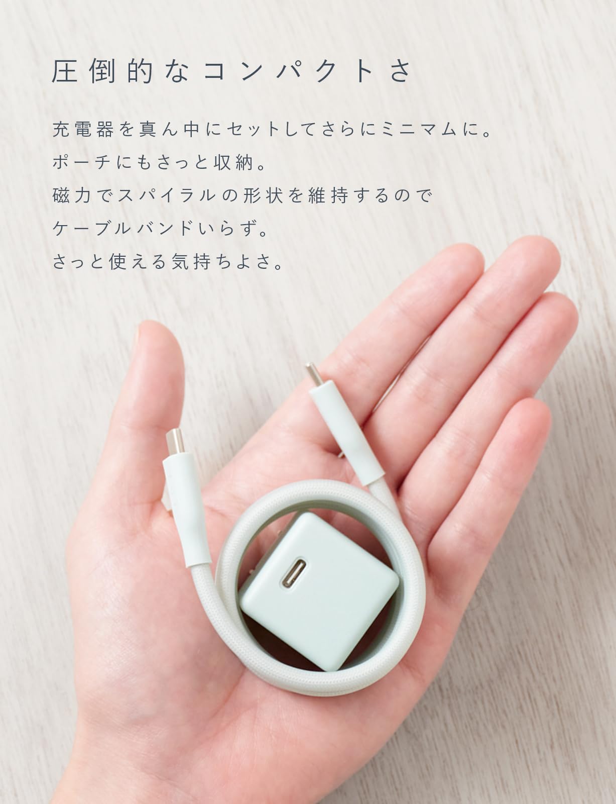 CIO スパイラルシリコンケーブル クリアカラー CtoC (カームブルー) (Type-C/USB-C) 急速充電 磁石 マグネット吸着 充電ケーブル PD 240W データ転送 480Mbps 形状記憶