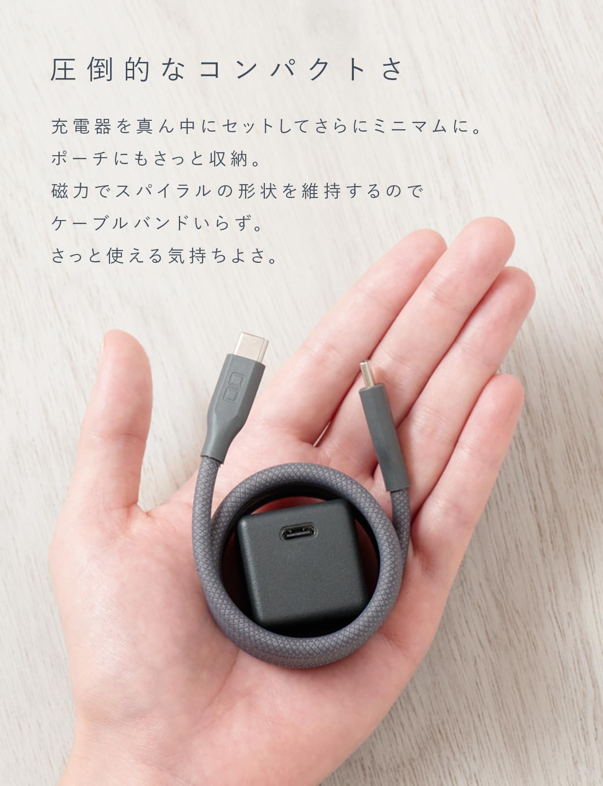 CIO スパイラルシリコンケーブル クリアカラー CtoC (ライトブラック) (Type-C/USB-C) 急速充電 磁石 マグネット吸着 充電ケーブル PD 240W データ転送 480Mbps 形状記憶