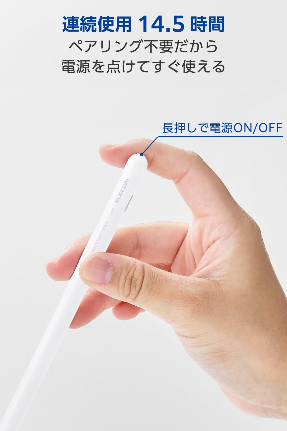 エレコム タッチペン ワイヤレス充電 磁気吸着式【iPad A16、iPad7/8/9/10、Pro 11/12.9/13インチ、Air3/4/5/11・13インチ、mini5/6に対応】ペンシル パームリジェクション 傾き検知 USB-C急速充電 約30分 P-TPACSTAP11WWH