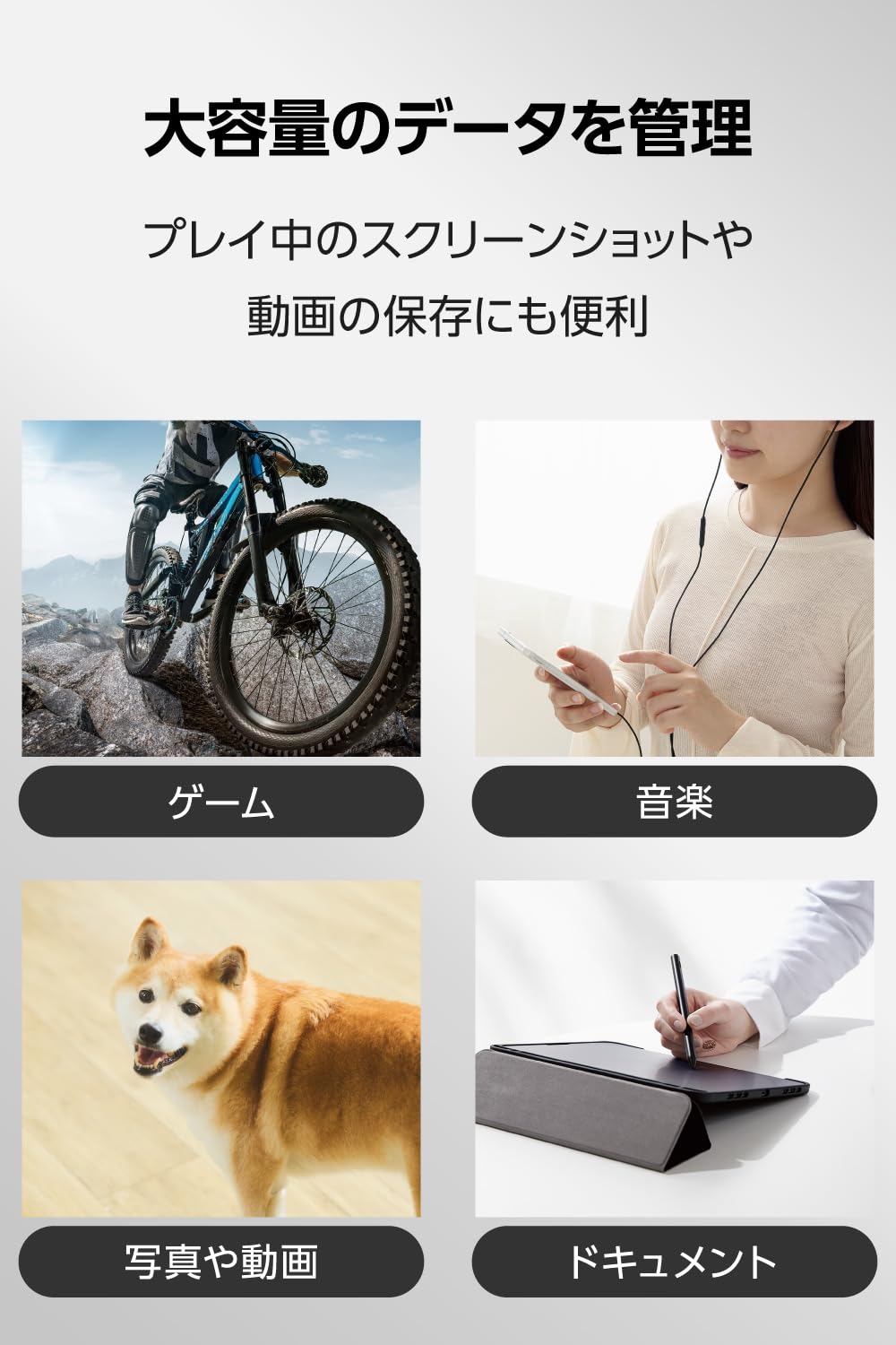 大容量のゲームデータやプレイ中のスクリーンショット・動画、その他写真・音楽データの管理に便利です。