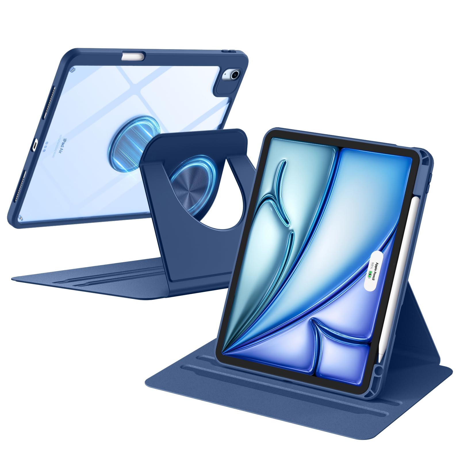 Maledan iPad Air 11インチ ケース 回転着脱式 強力マグネット M3/M2対応 第5/4世代 10.9インチ対応 横縦置き ipad Pro 11インチケース 第4/3/2/1世代対応可カバー 背面クリア オートスリープ機能 耐久性保護 ペン収納可能
