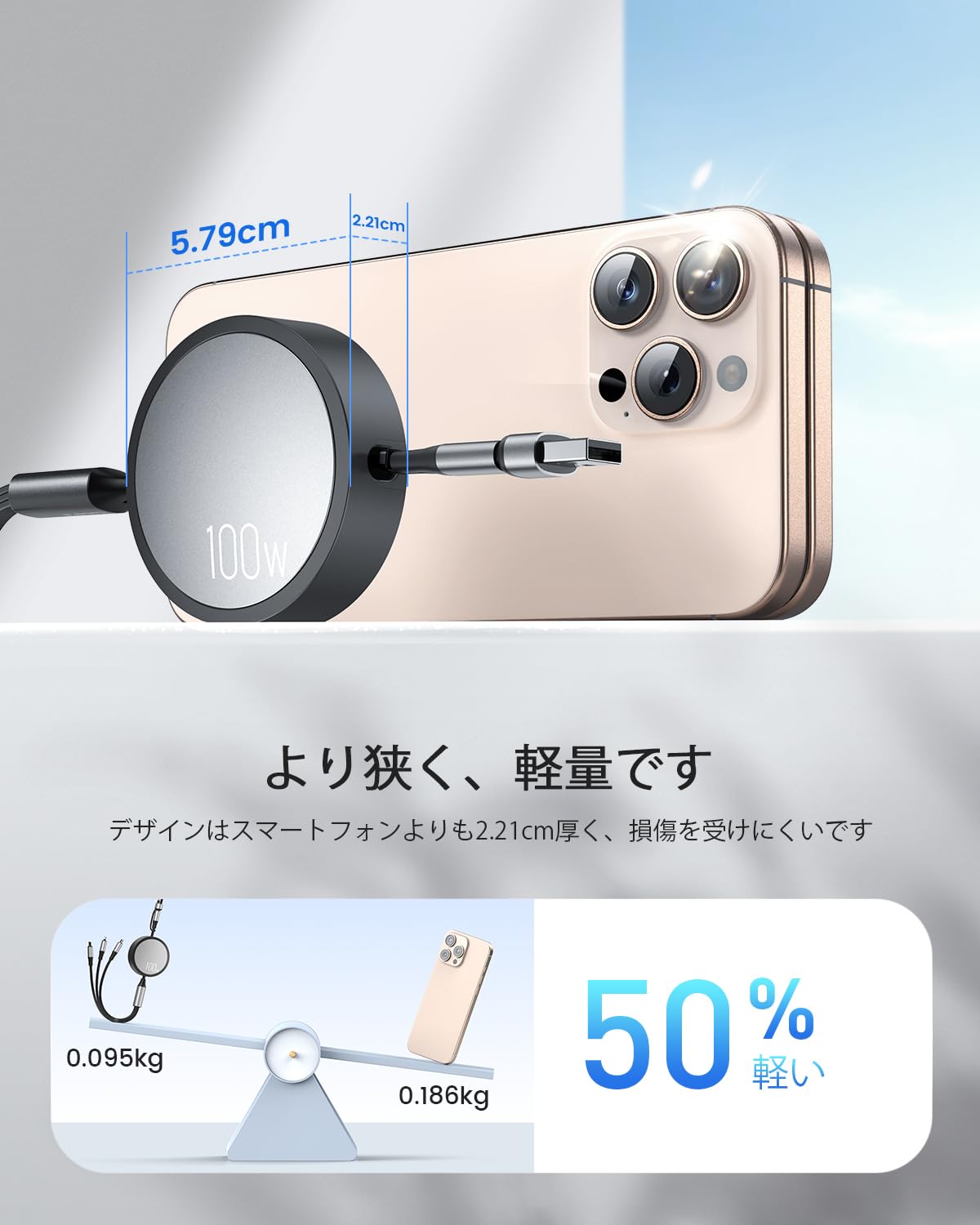 ご注意:100W超高速充電実現の場合は100W充電器をご使用ください。