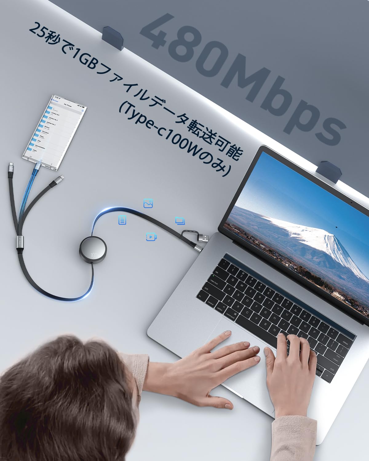 ※注意:Type-C出力ポートのみが最大100Wの充電と480Mbpsのデータ転送をサポートします。