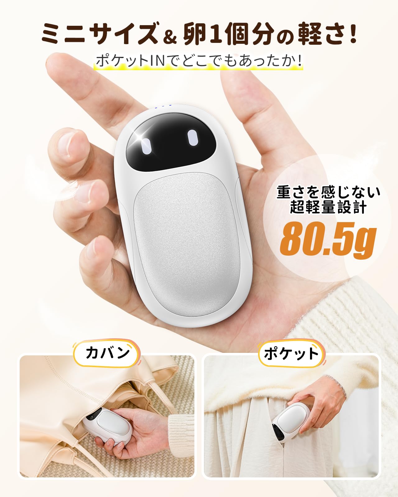 ■ 【超軽量・コンパクト・携帯便利】HAGOOGI電気カイロは95×52×20mmの手のひらサイズ。