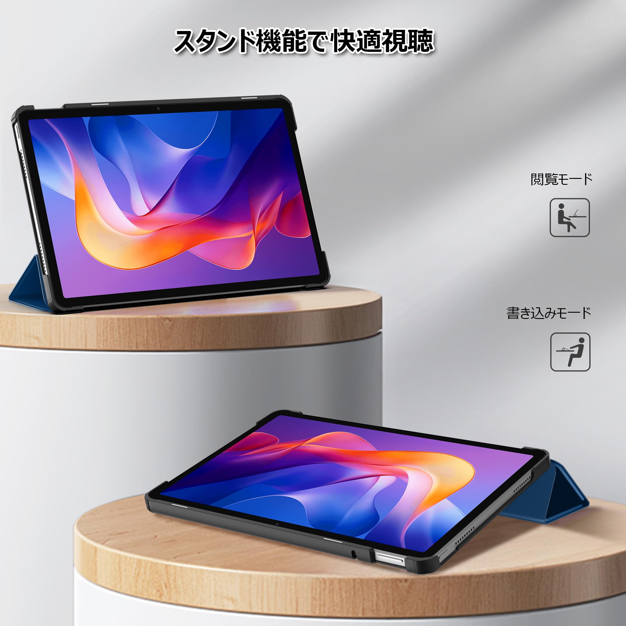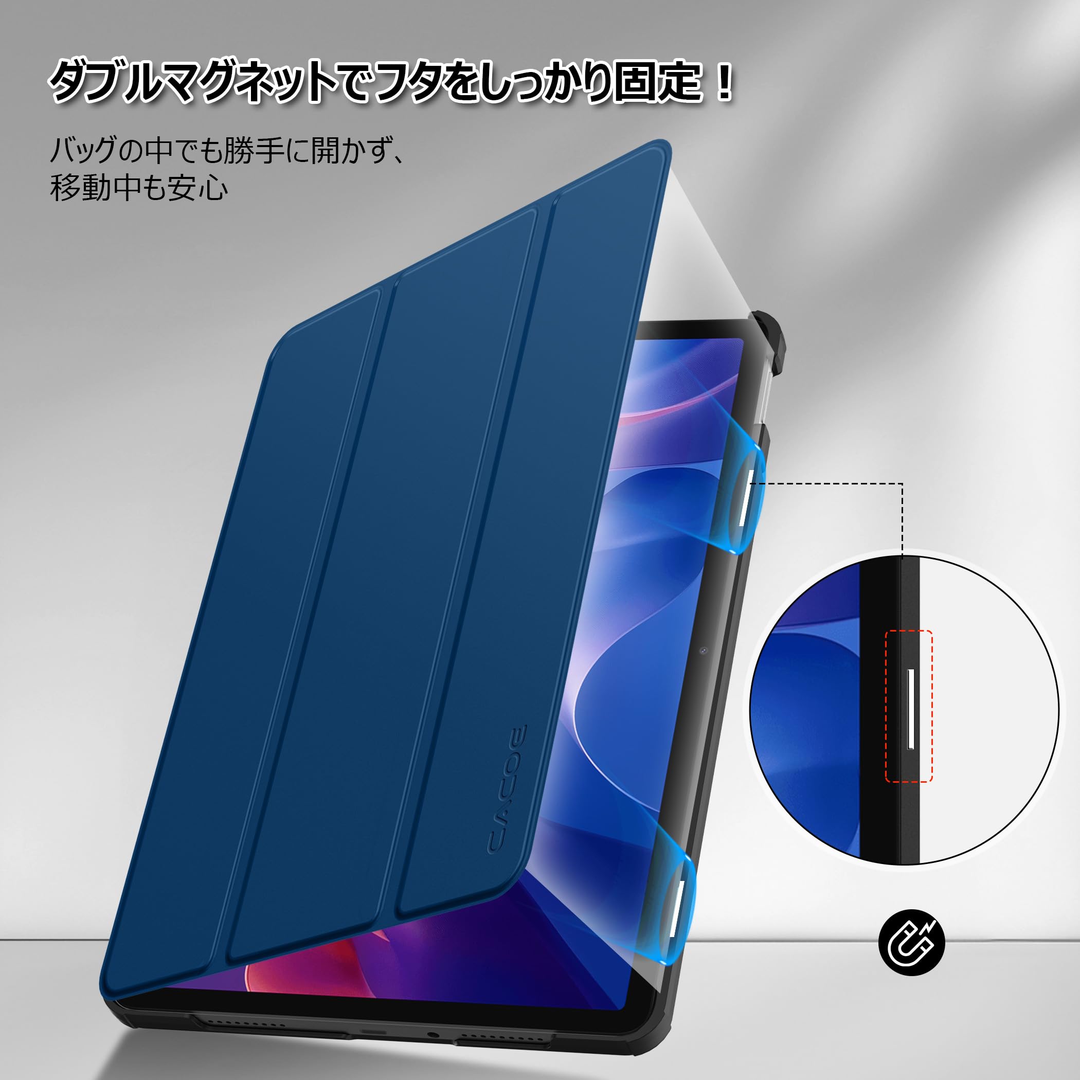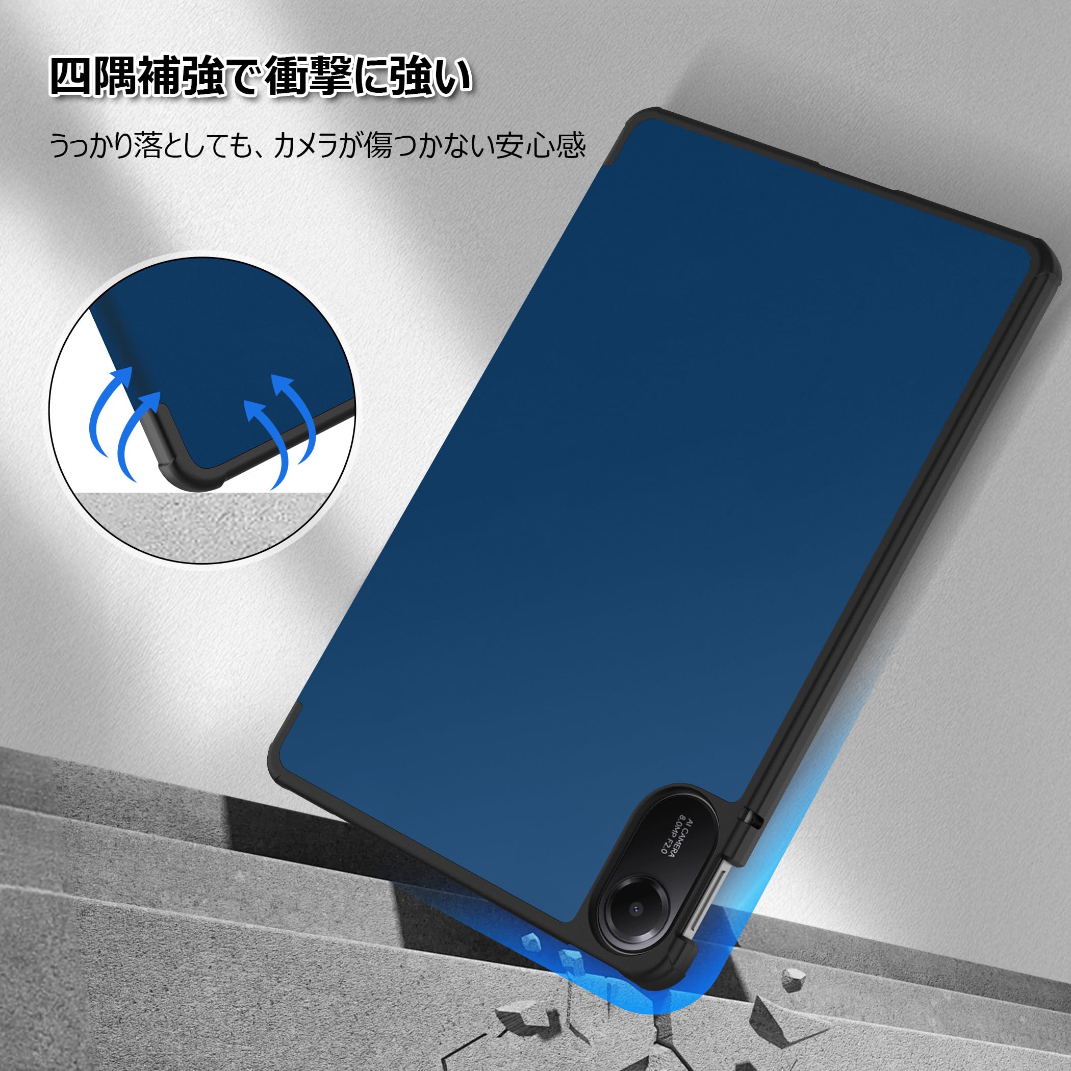 [Redmi Pad 2 ケース ガラスフィルム セット]CACOE Redmi Pad2 11インチ 2025用 ハードケース オートスリープ 三つ折り 耐衝撃 軽量 xiaomi タブレット カバー ネイビー