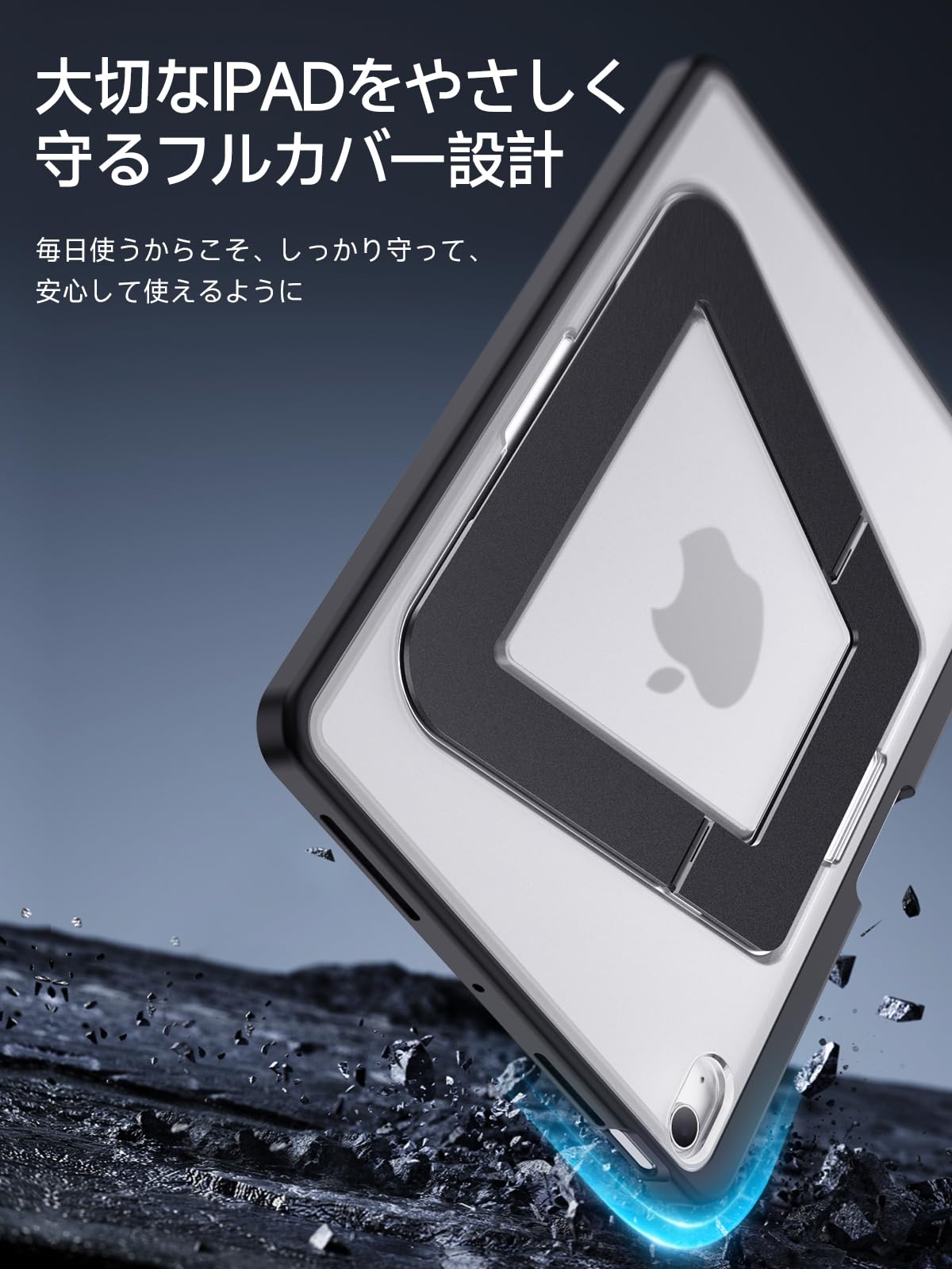 さらに、四隅に搭載されたX-SHOCK第3世代構造と360°エアクッションが衝撃を吸収し、大切なアイパッド エアー 11インチをしっかり守ります。