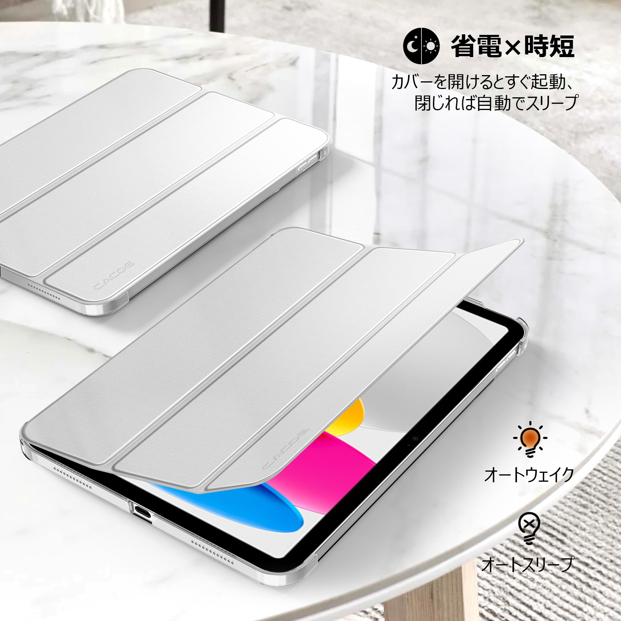 [iPad 11世代 10世代 ケース ガラスフィルム セット]CACOE ipad a16 11インチ 2025/10.9インチ 2022 アイパッド用 ハードケース オートスリープ 三つ折り Apple Pencil対応 あいばっど カバー シルバー