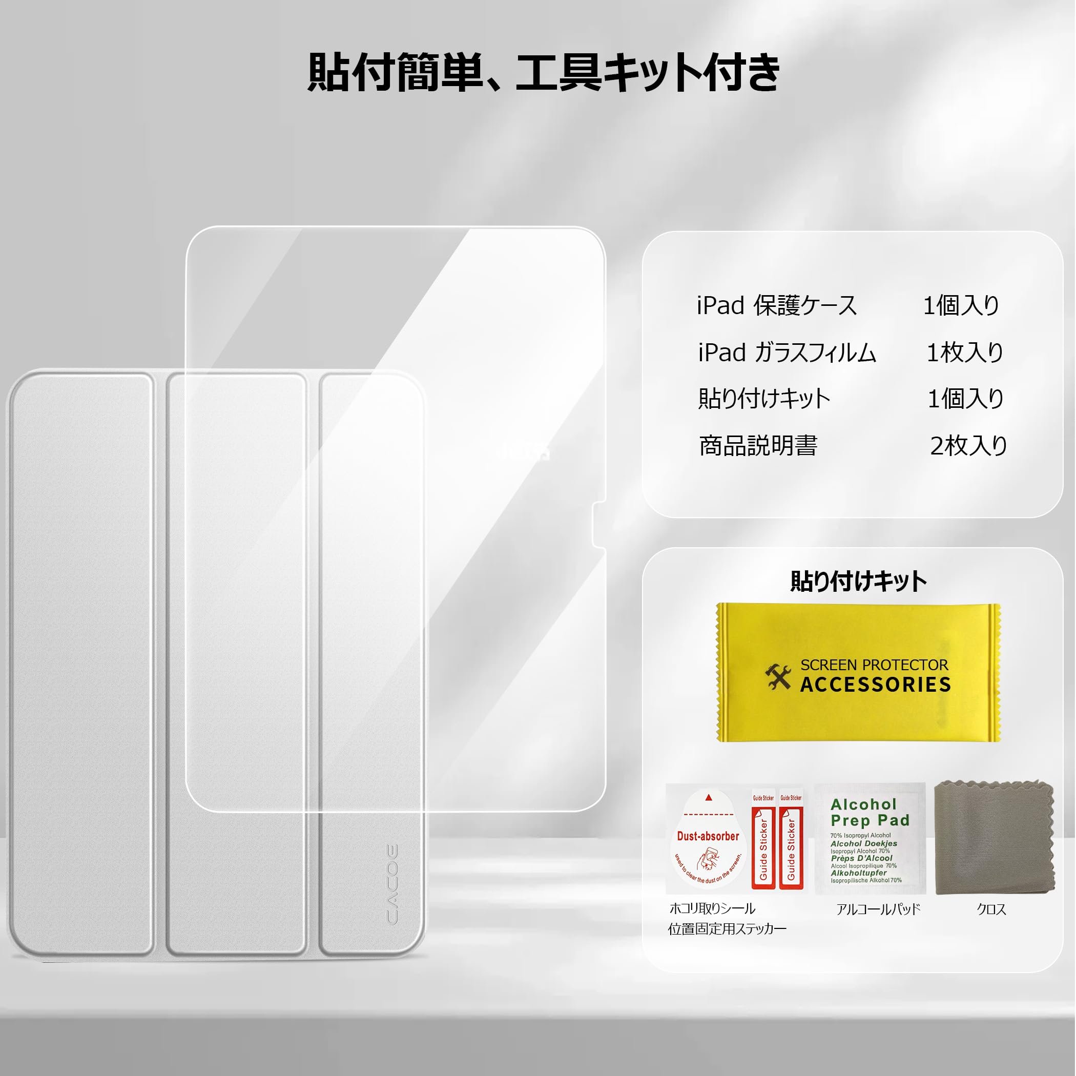 ■ 【セット:iPad ケース+ガラスフィルム】「届いてすぐに使えるのが嬉しい!」そんな声に応える、iPadユーザー待望の便利なセット。