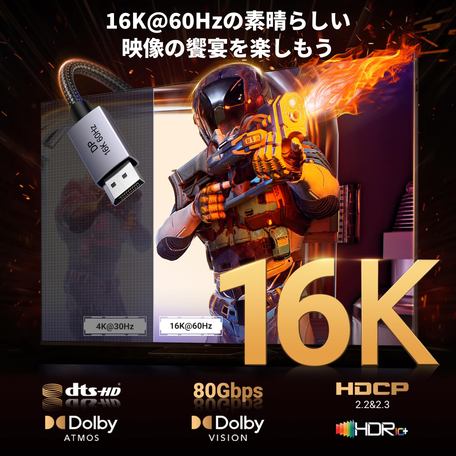 ■ 80Gbpsの高速伝送:最新のdisplayport 2.1ケーブルは80Gbpsの帯域幅をを提供します。