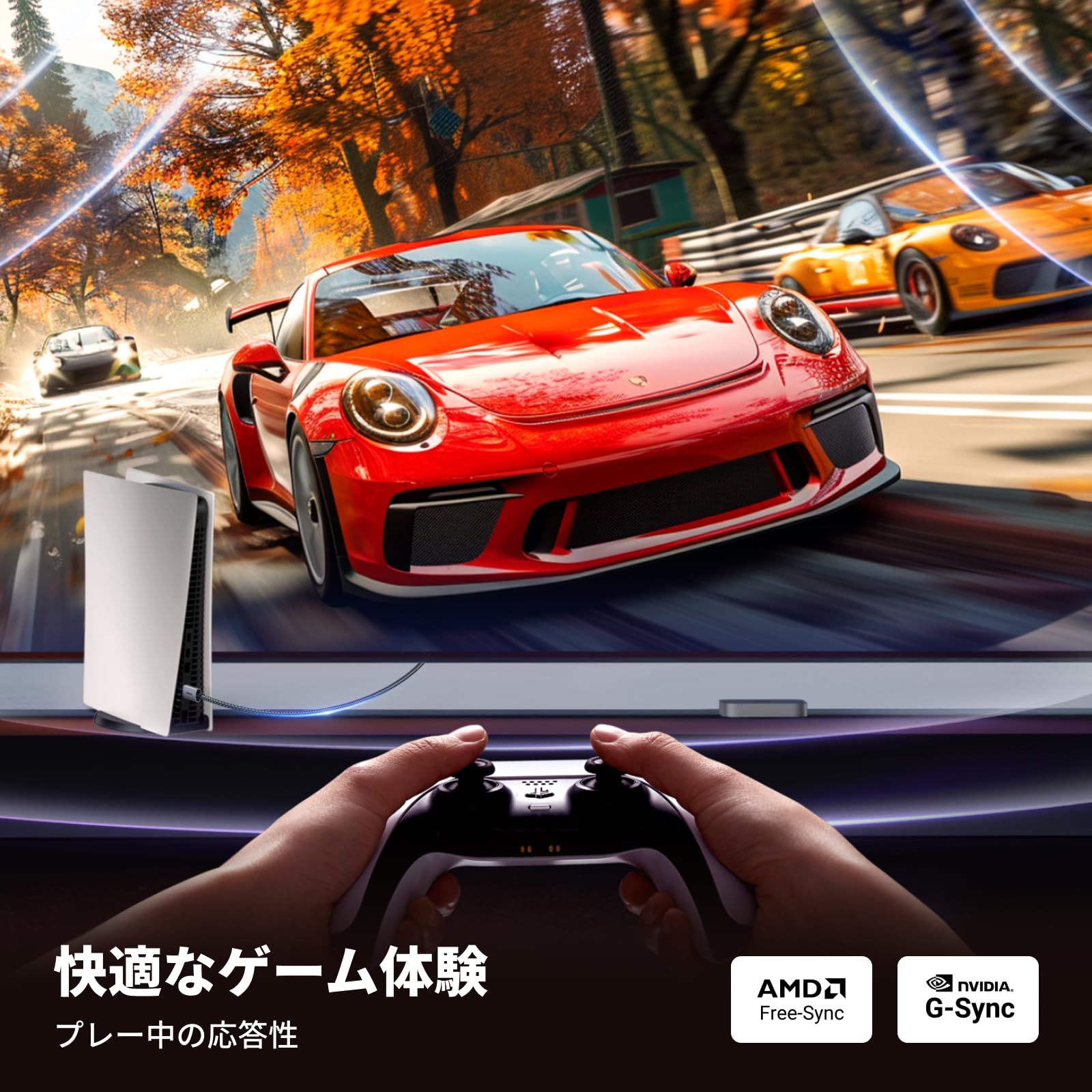 ■ FreeSync/G-Sync対応:FreeSync/G-Sync対応をサポートし、画面のカクつきやチラつきやフレームレートの低下を軽減し、鮮明でクリアな動画再生を実現。