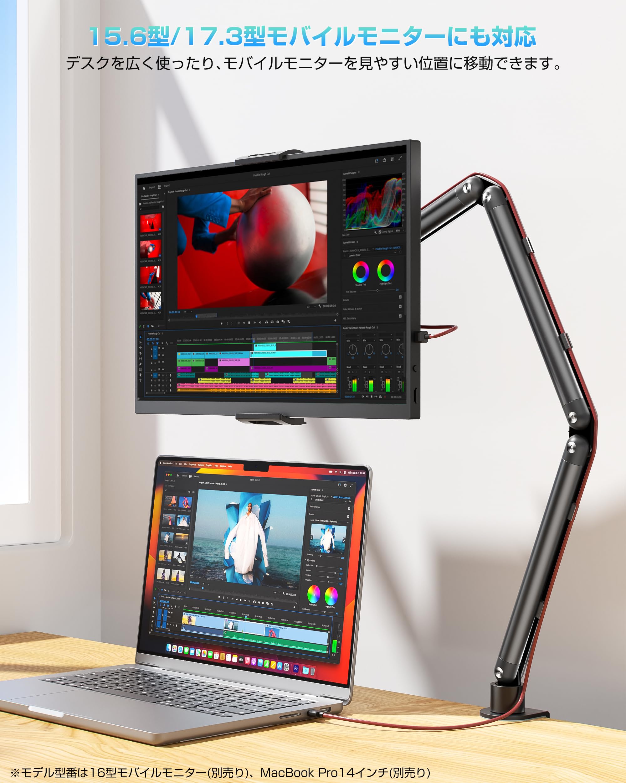 4.7〜17.3インチのスマホ、タブレット、モバイルモニターに対応します。
