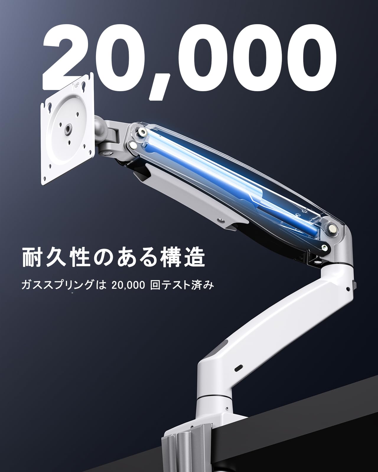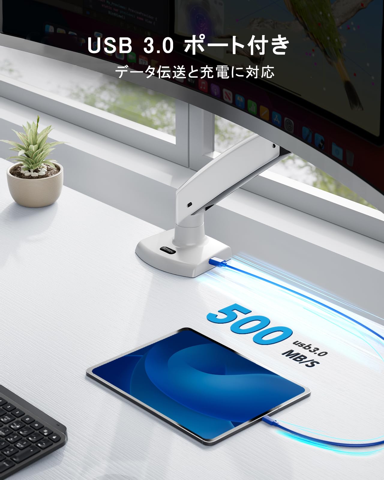 HUANUO (ファーノー) PCモニターアーム 液晶ディスプレイアーム 13~49インチ対応 耐荷重2~12kg ガススプリング式 グロメット式&クランプ式 VESA100*100 USBケーブル付き 多角度調節 ケーブル収納 (ホワイト)
