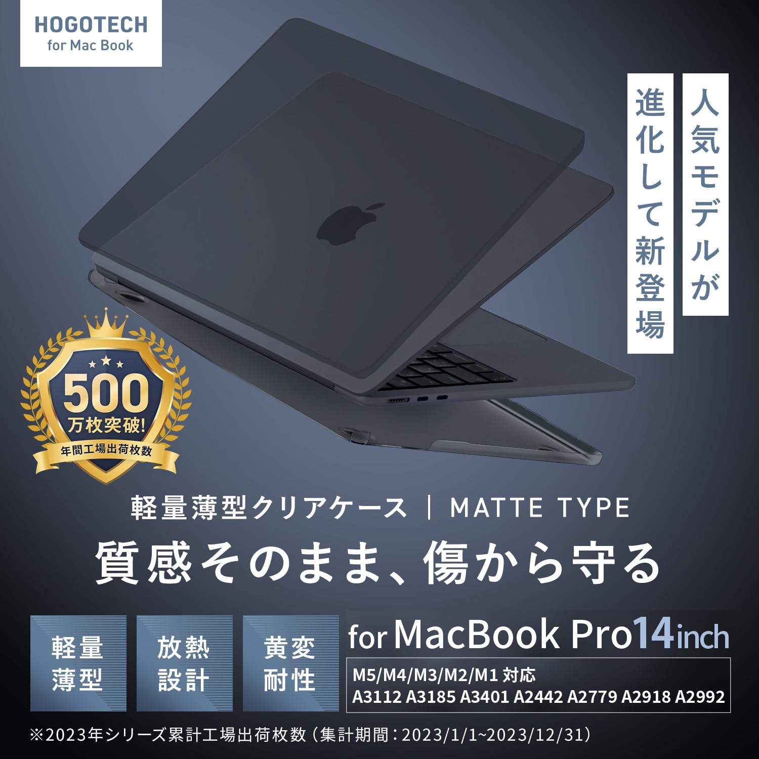 スペースブラック【2025 M5対応】MacBook Pro 14インチ マットカバー【質感そのまま、傷を守る】ハードケース M4/M4 Pro/M4 Max対応 2024 M3/M2/M1 A3112 A3185 A3401 A2442 A2779 A2918 A2992 HOGOTECH