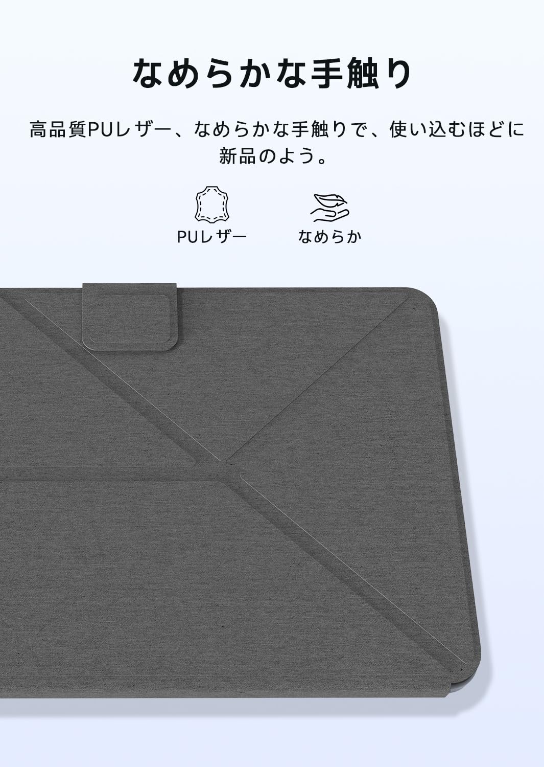 ケース本体には柔軟性と耐久性に優れたTPU素材を使用し、割れにくくタブレット本体へのダメージを最小限に抑えます。
